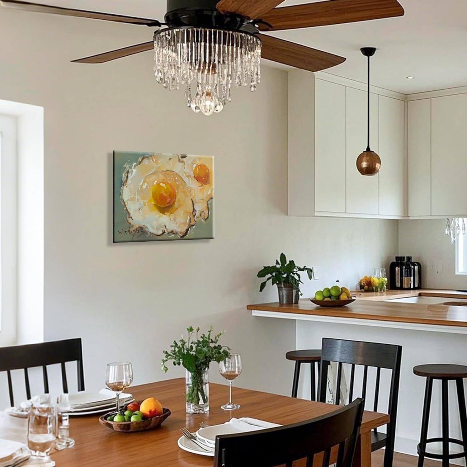 - Vibrant Food Art Print: Features a sunny-side-up egg design from Thomas Xie's food oil painting collection. Gallery-wrapped canvas adds artistic appeal to kitchens or dining spaces.