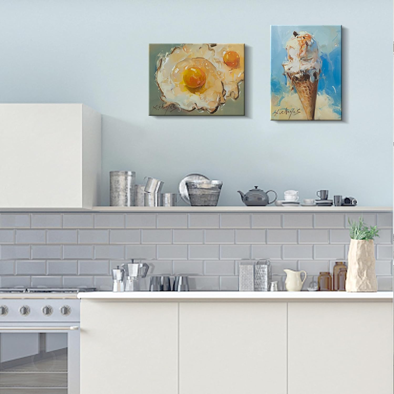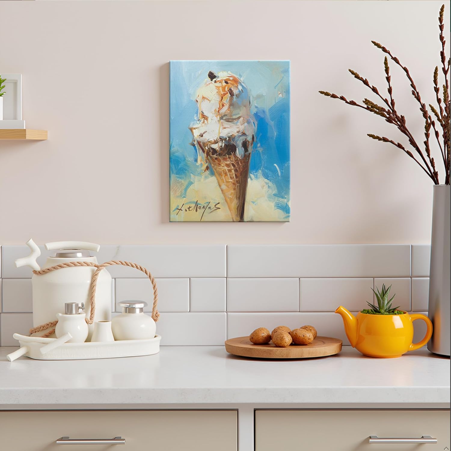 JZLDZS Ice Cream Sweet Treat Wall Art - 12x16 Inch Gallery Wrapped Canvas Painting for Kitchen, Dining & Dessert Lover Decor Ready to Hang