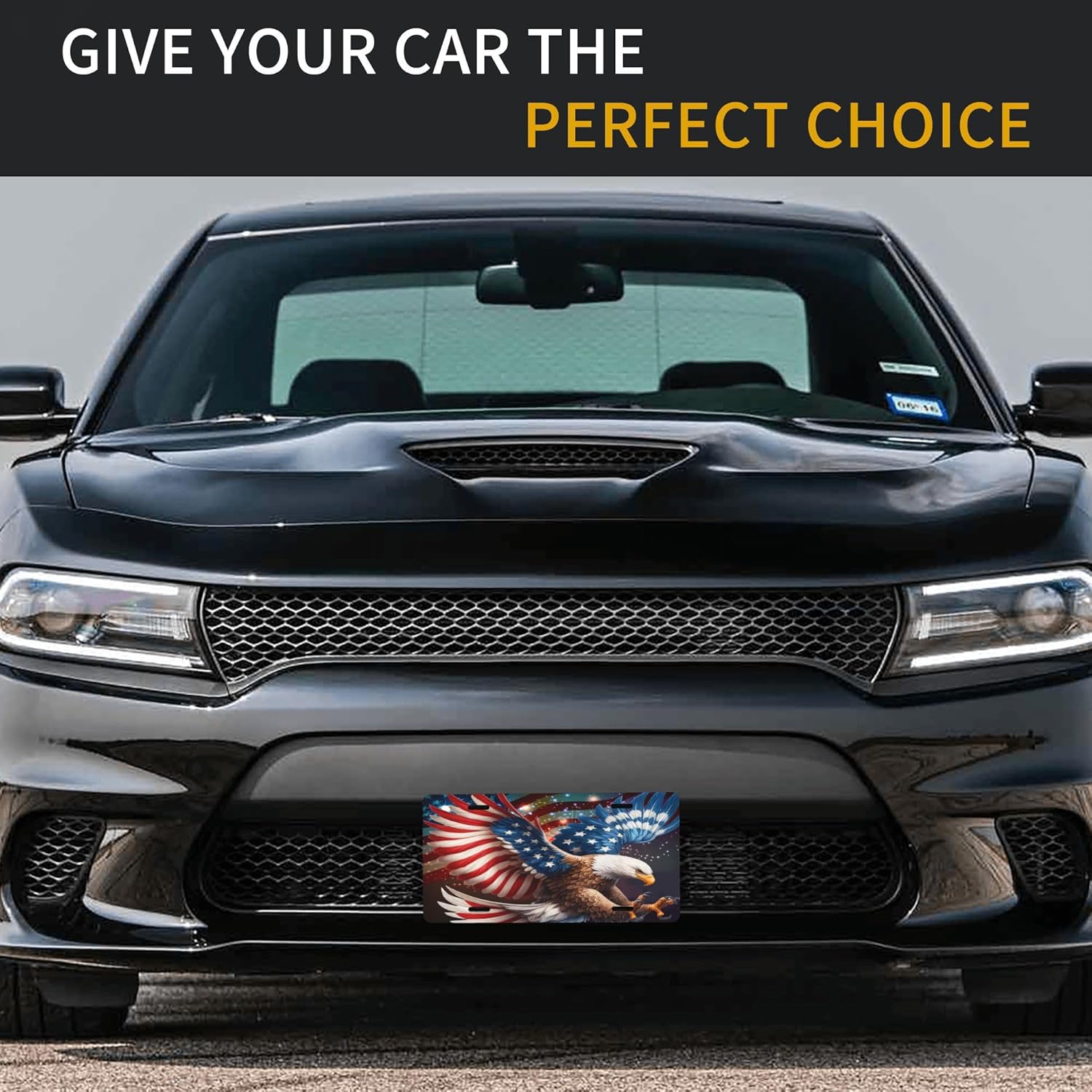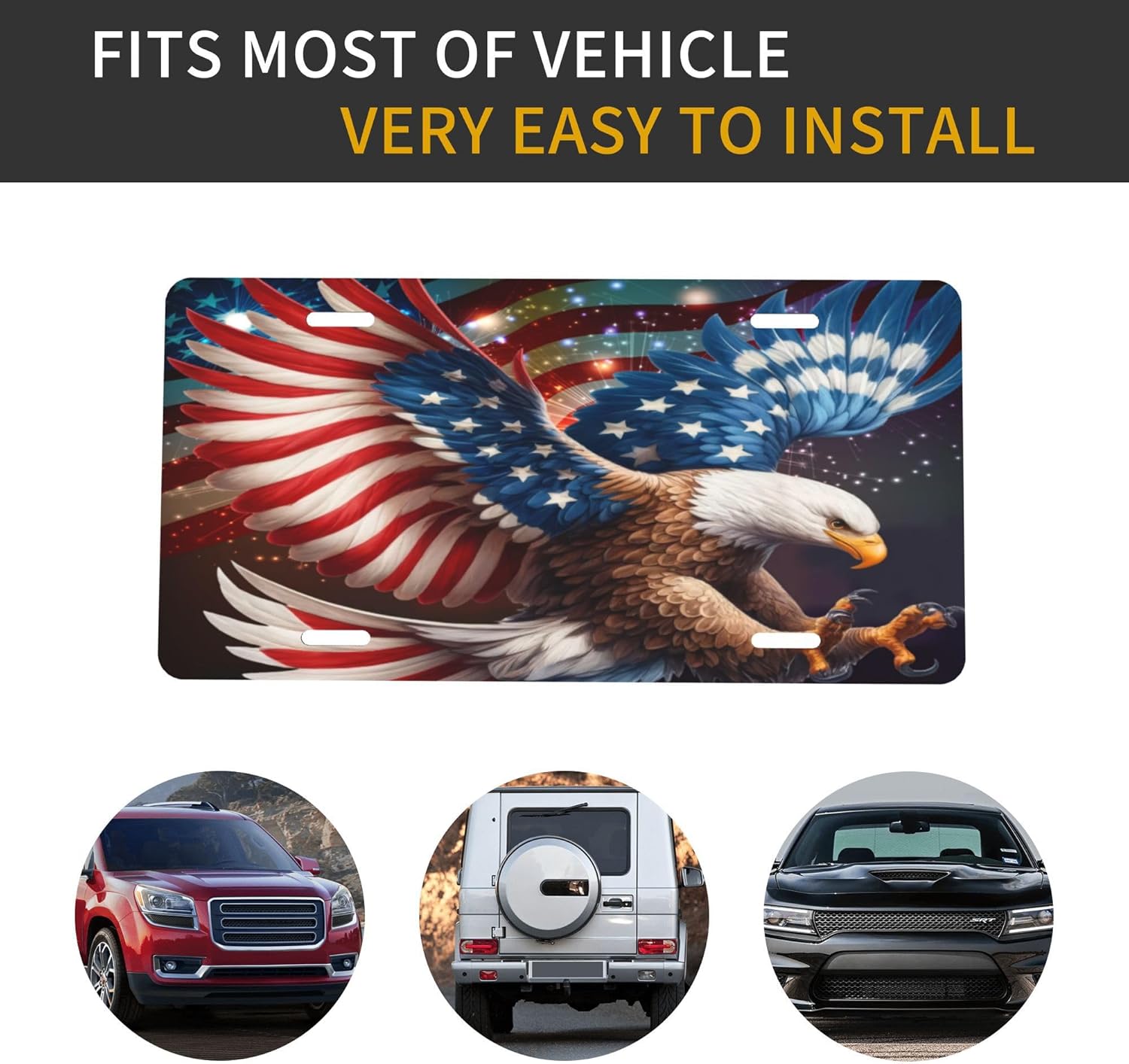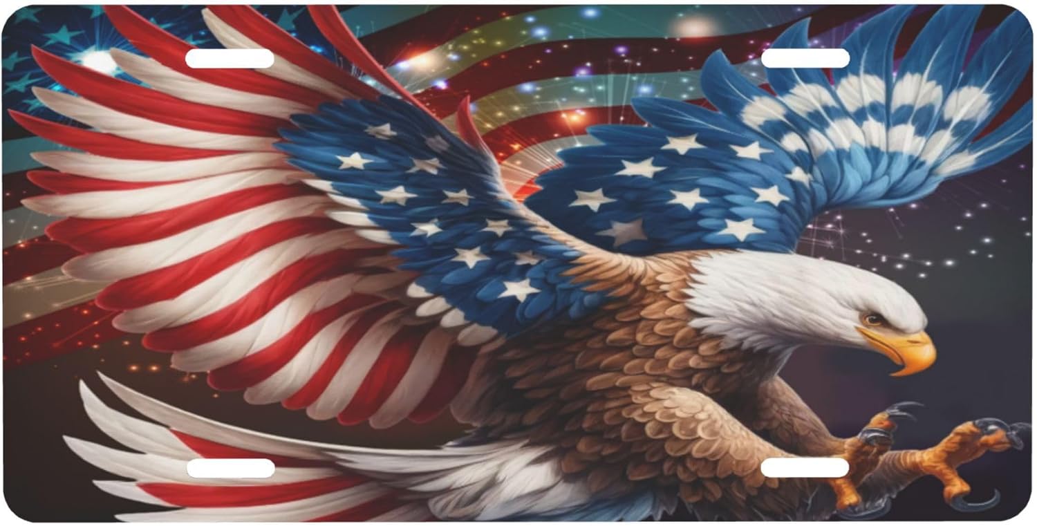 Front License Plate for Car Designs Animal Eagle America USA Stainless License Plate Cover Holder for Men Women Metal Aluminum Decorative Accessory Vanity Tag Standard 6 X 12 inch (4 Holes)