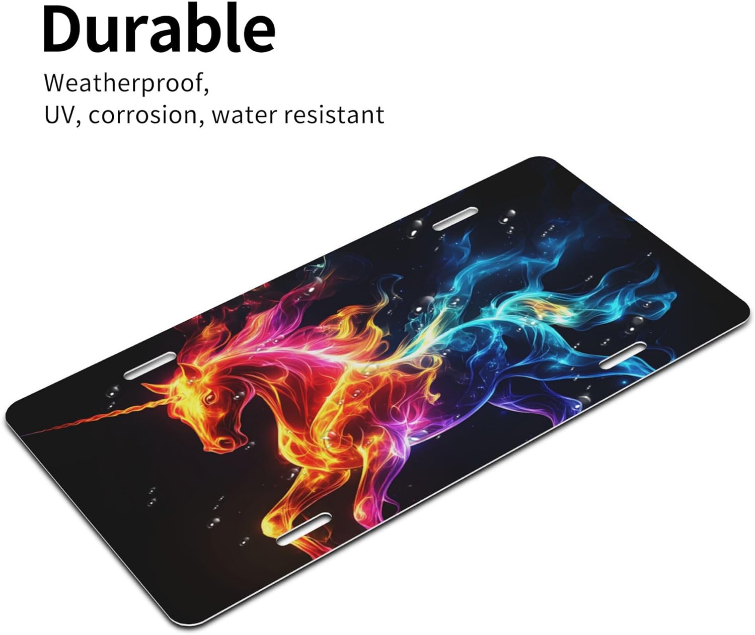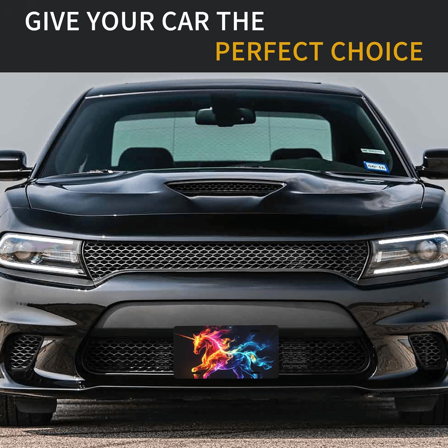 Front License Plate for Car Designs Color Flame Animal Horse Stainless License Plate Cover Holder for Men Women Metal Aluminum Decorative Accessory Vanity Tag Standard 6 X 12 inch (4 Holes)