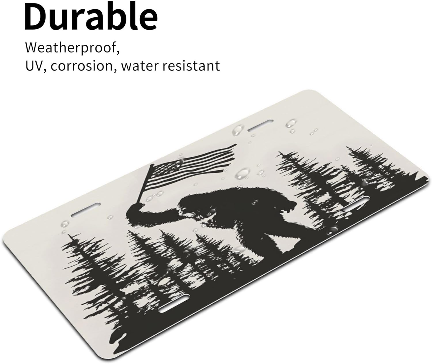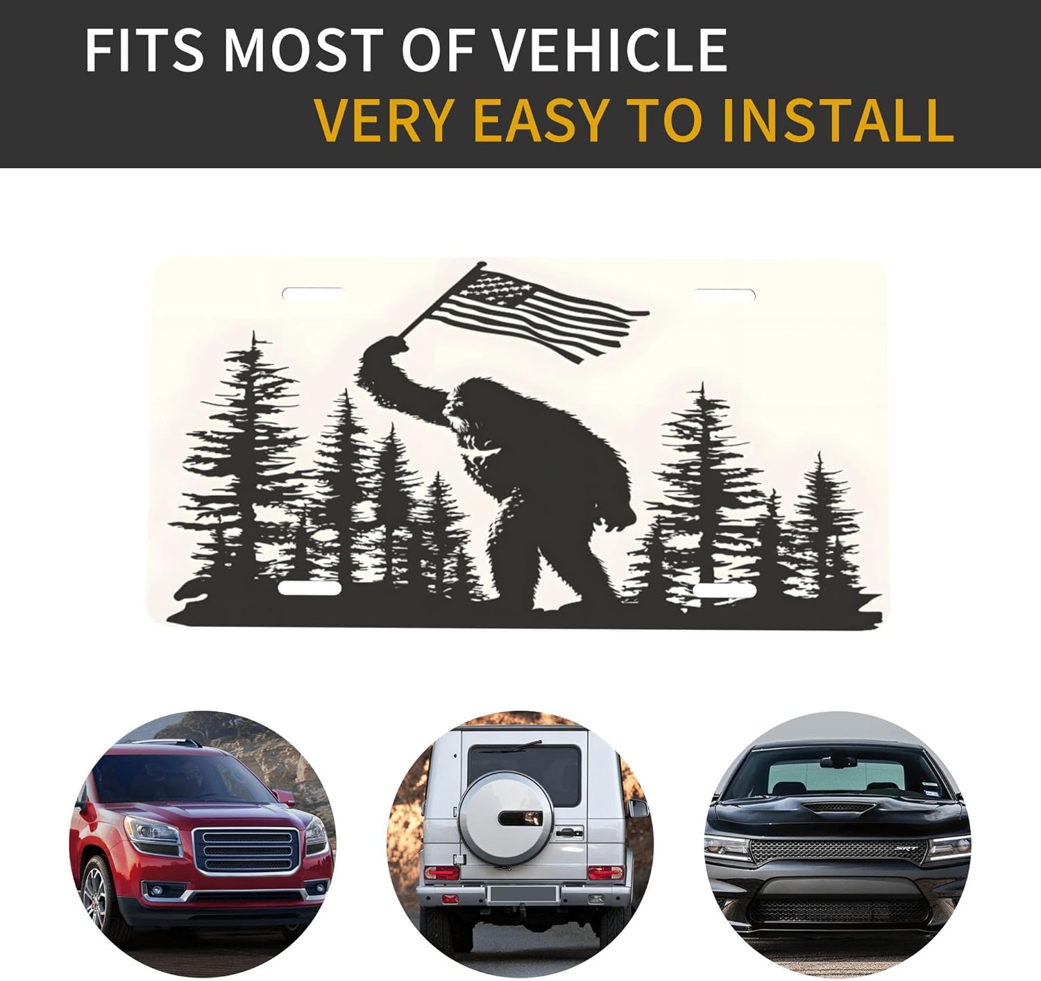 Custom Front License Plate for Car Designs Bigfoot Stainless License Plate Cover Holder for Men Women Metal Aluminum Decorative Accessory Vanity Tag Standard 6 X 12 inch (4 Holes)