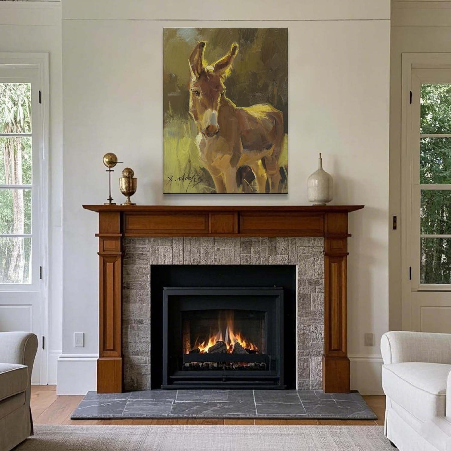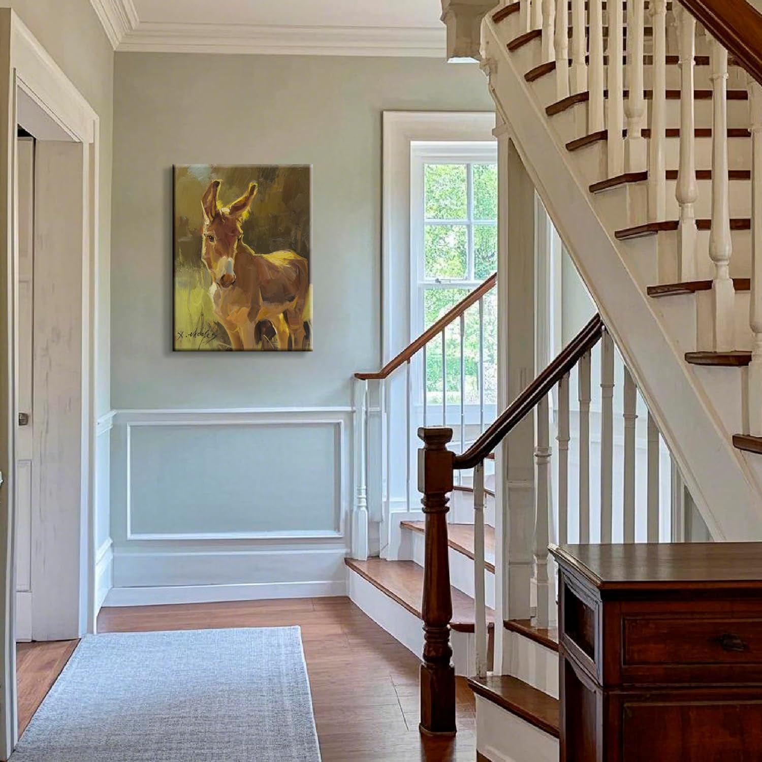 - 【Farmhouse Decor】 Hand-stretched framed donkey canvas print reproduction (24"x32"/60x80cm) featuring artist Thomas Xie's signature donkey oil painting series in contemporary farmhouse style