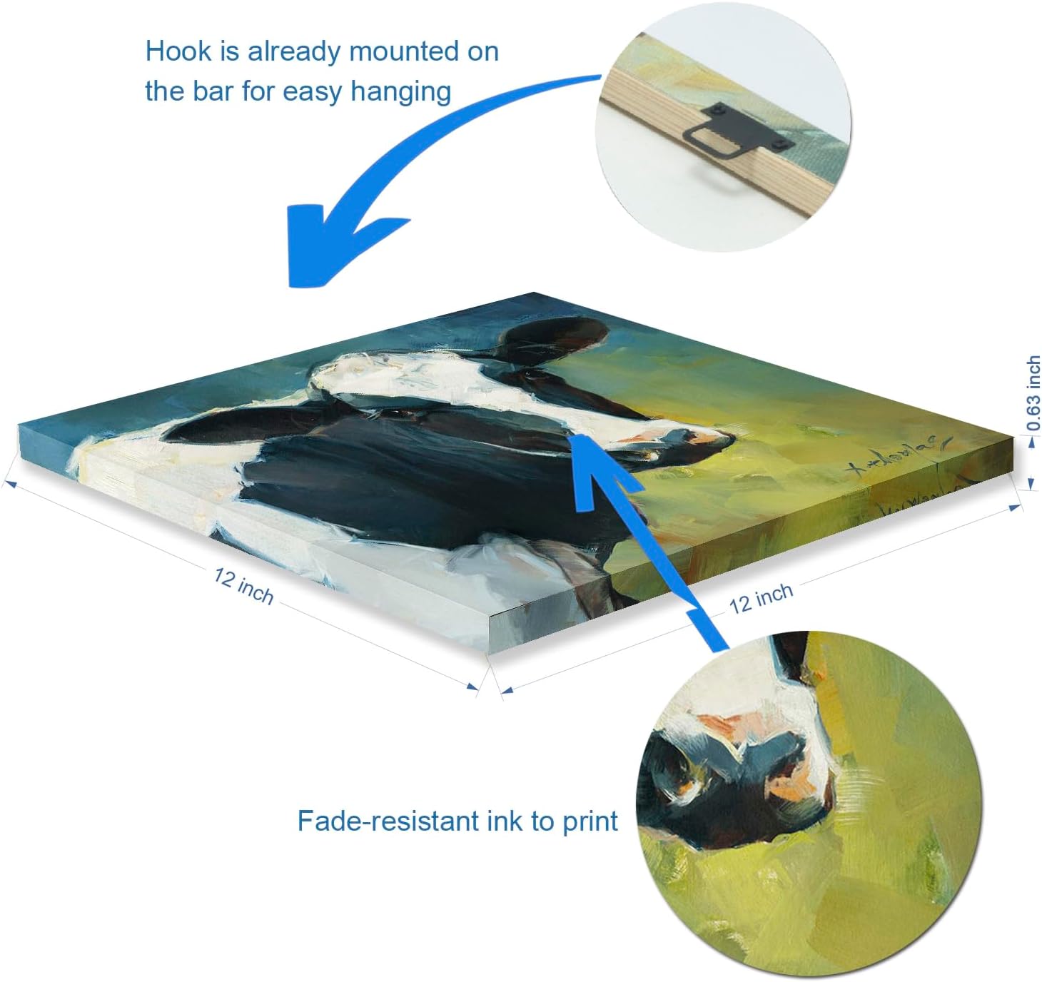 - 【12"x12" Framed Cow Canvas Art】This cow canvas art print is from the original farm series of oil paintings by artist Thomas Xie. HD printed on heavyweight cotton canvas with solid wood frame - Idea for farmhouse wall displays.