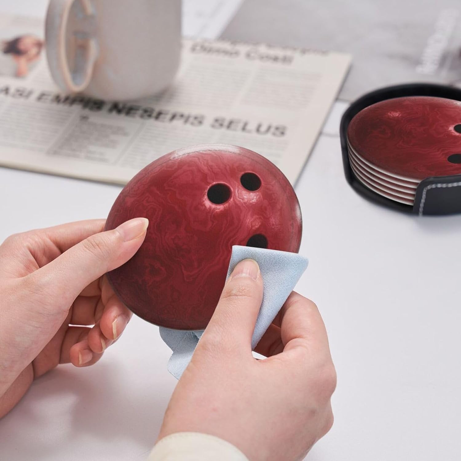 6 Pcs Bowling Ball Drink Coasters with Holder Coasters for Drinks Coffee Table Home Decor Housewarming Gift