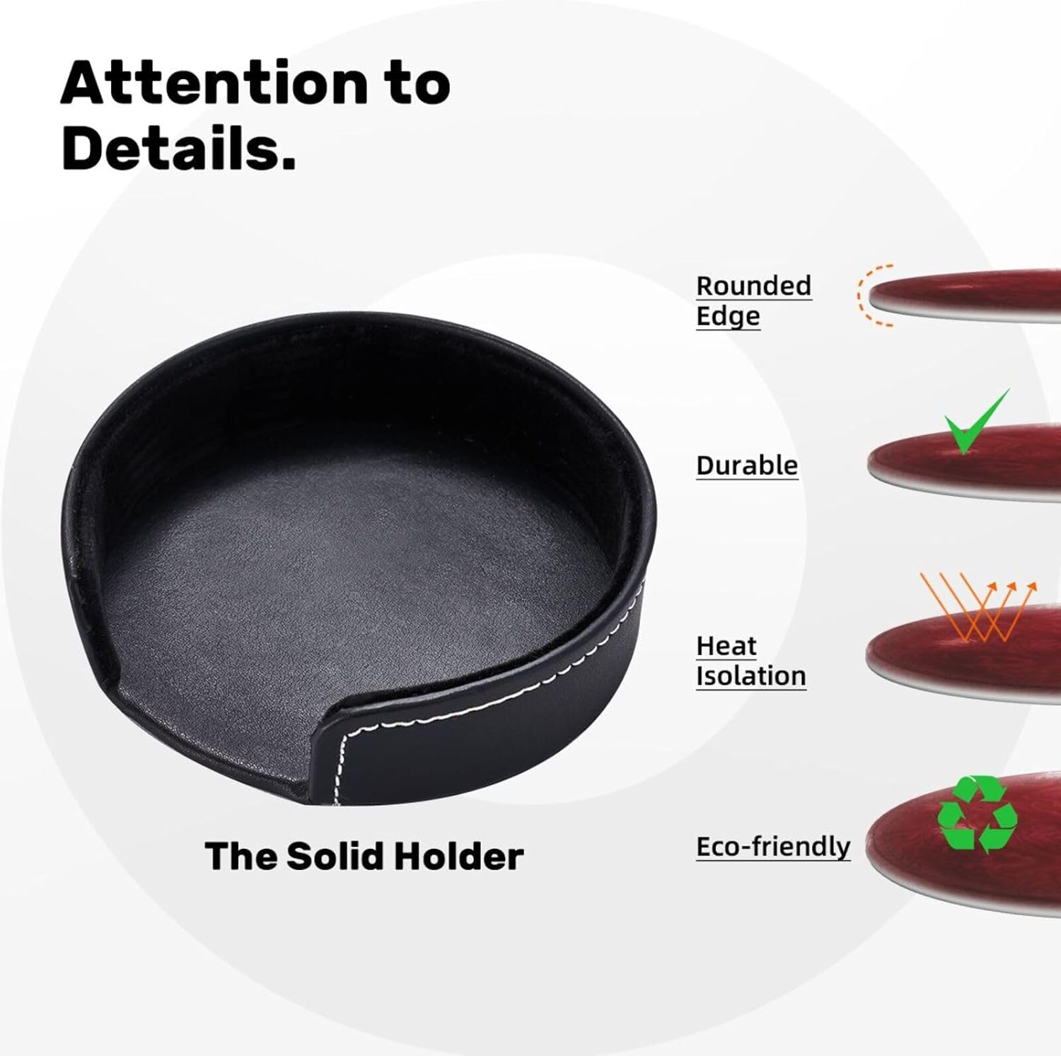 - 【Selected Materials】6 pcs drink coasters with holder are soft and tough. Leather gives the coasters a unique texture. The surface is easy to clean. Lightweight and easy to store.