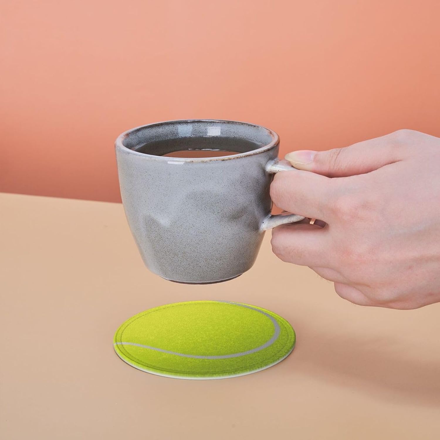 6 Pcs Tennis Ball Drink Coasters with Holder Coasters for Drinks Coffee Table Home Decor Housewarming Gift