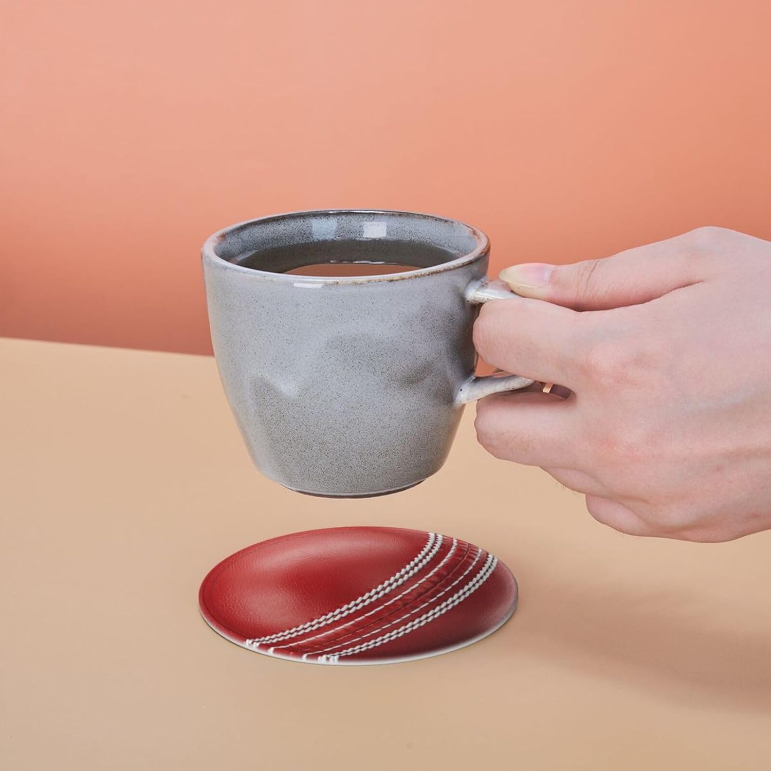 6 Pcs Cricket Ball Drink Coasters with Holder Coasters for Drinks Coffee Table Home Decor Housewarming Gift