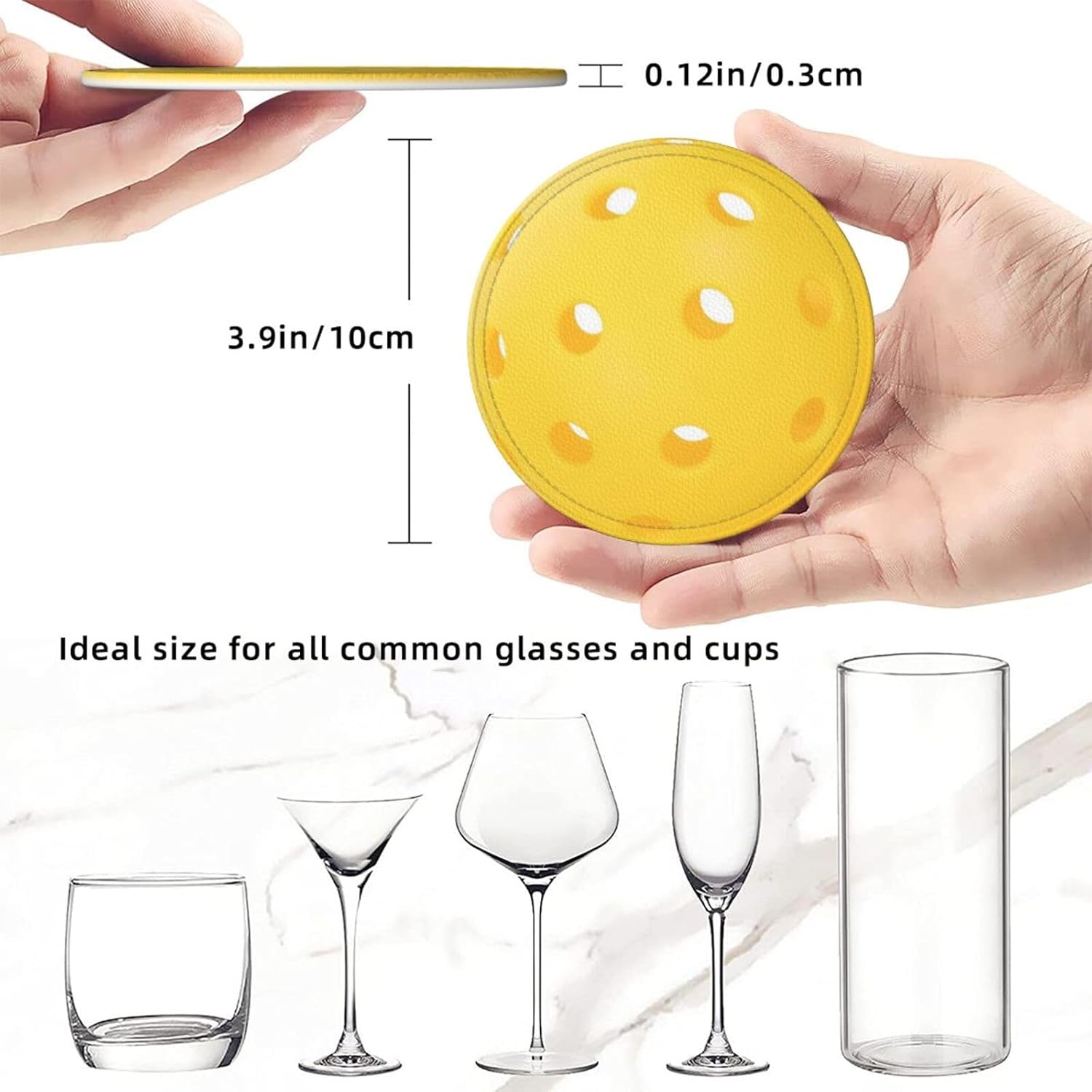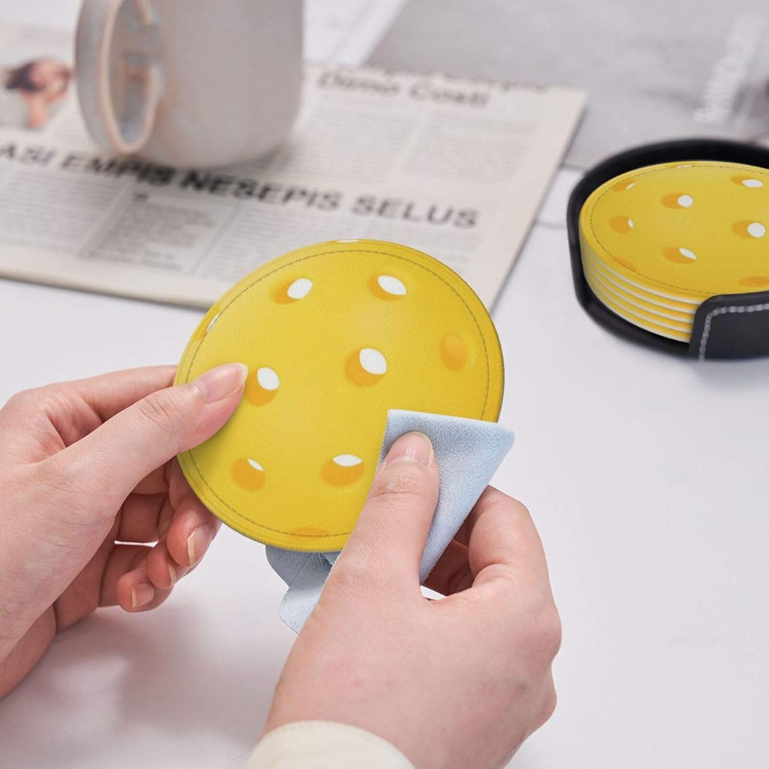 6 Pcs Pickleball Drink Coasters with Holder Coasters for Drinks Coffee Table Home Decor Housewarming Gift
