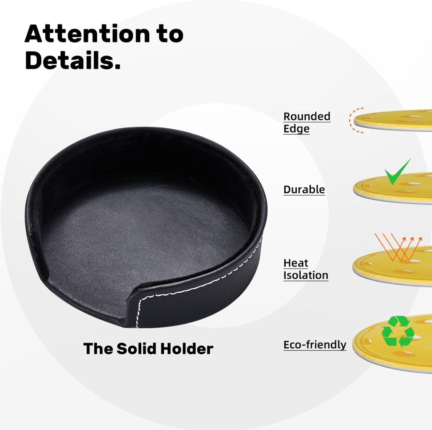 - 【Selected Materials】6 pcs drink coasters with holder are soft and tough. Leather gives the coasters a unique texture. The surface is easy to clean. Lightweight and easy to store.