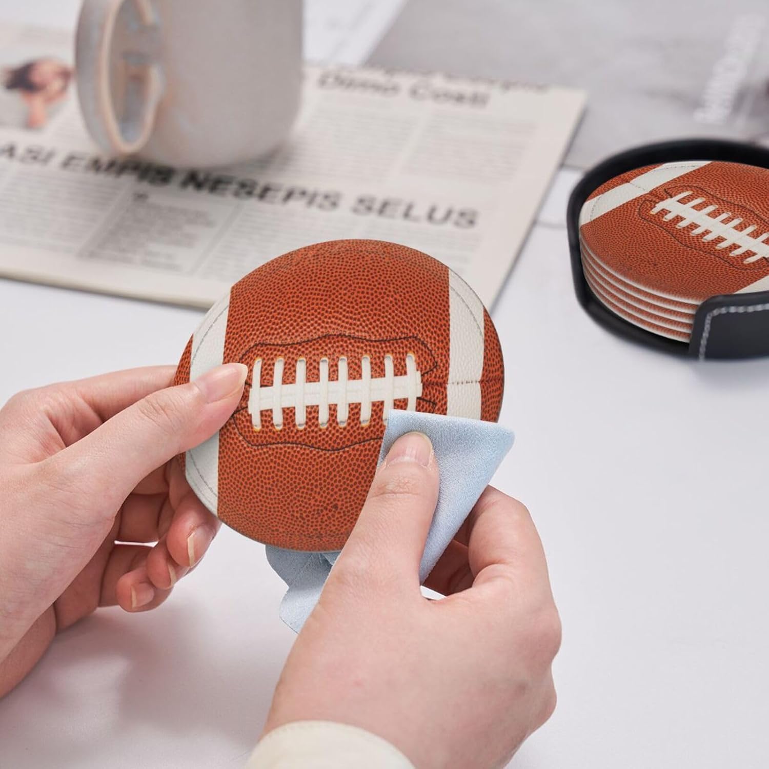 6 Pcs Football Drink Coasters with Holder Coasters for Drinks Coffee Table Home Decor Housewarming Gift