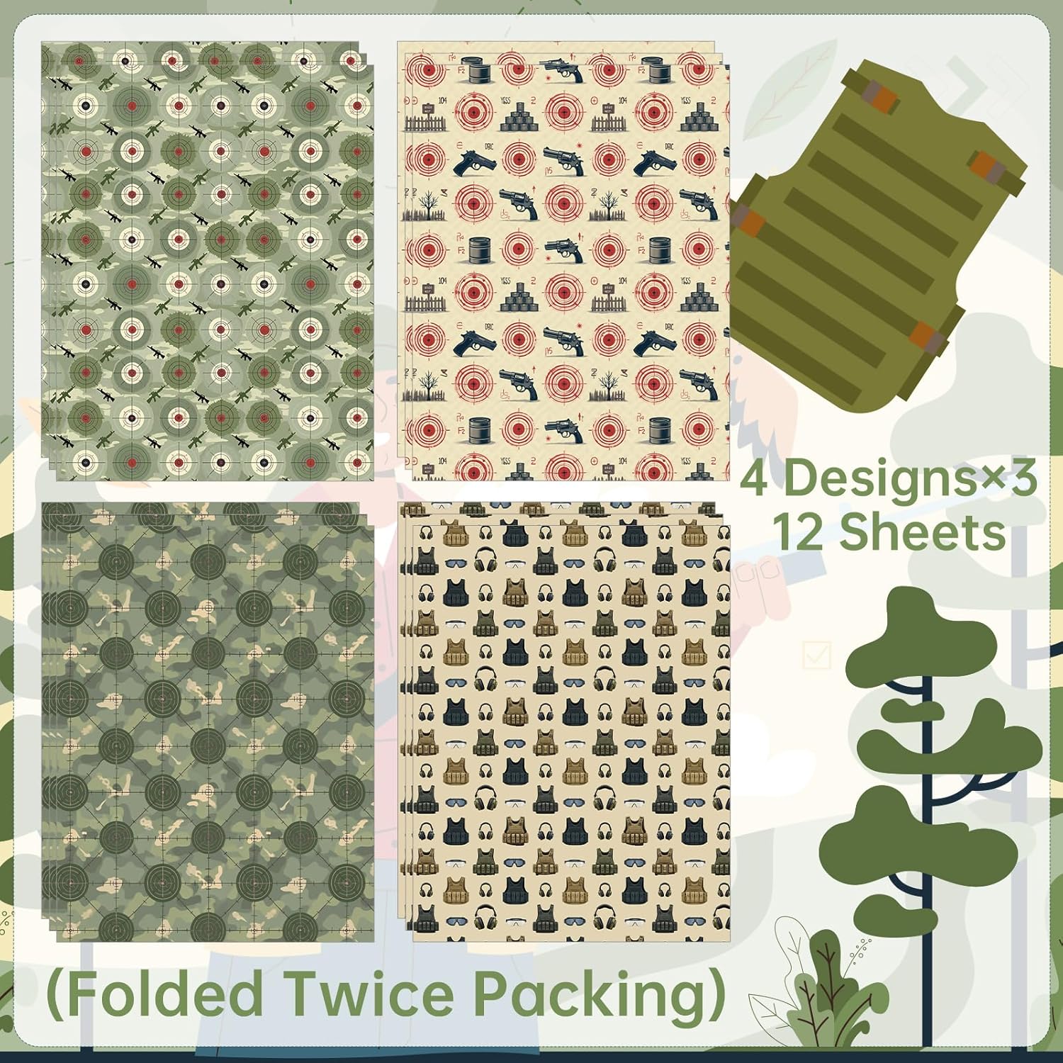- Included Components : 12 Sheets Shooting Range Themed Wrapping Paper