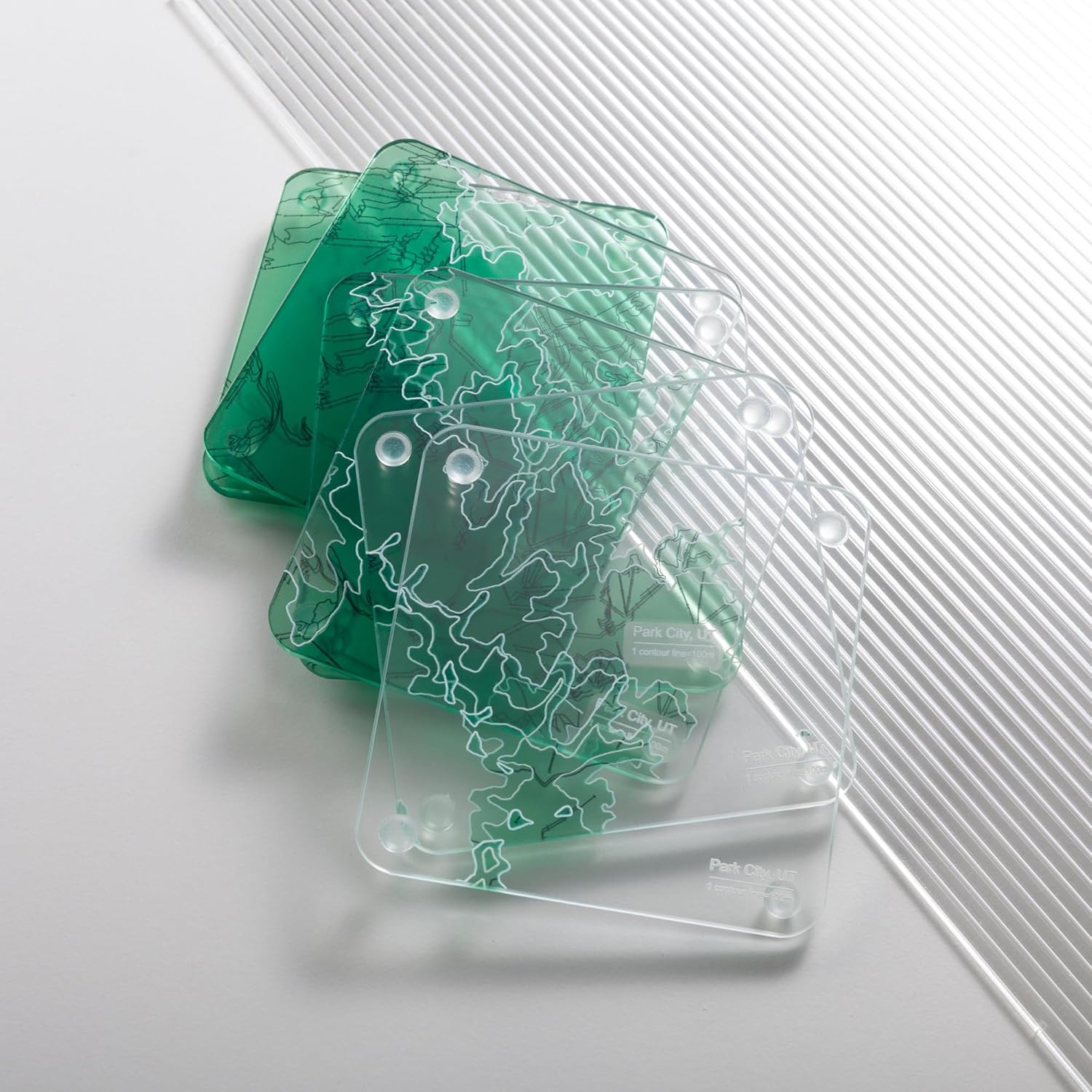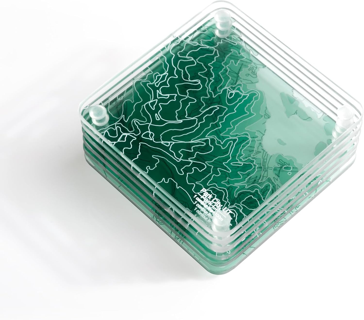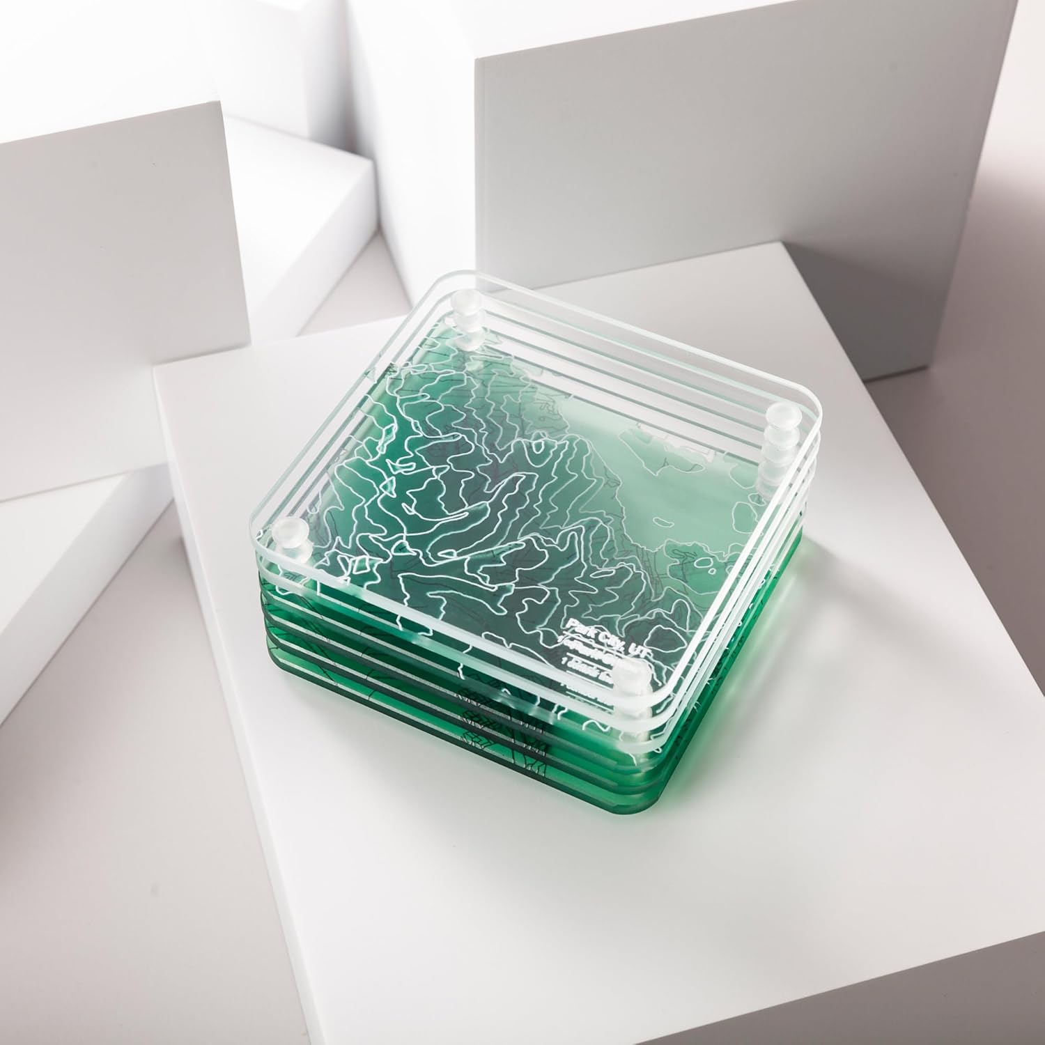 - 3D Contour Map Glass Drink Coasters of Mountains, Ski Resort:O3 Design Studio's original 3D contour coaster distributes contour lines on six coasters, making them stacked up to create a three-dimensional mountain。 Compared to printed maps, you can more clearly understand the relationship between roads, rivers, mountain cable cars and contour lines.