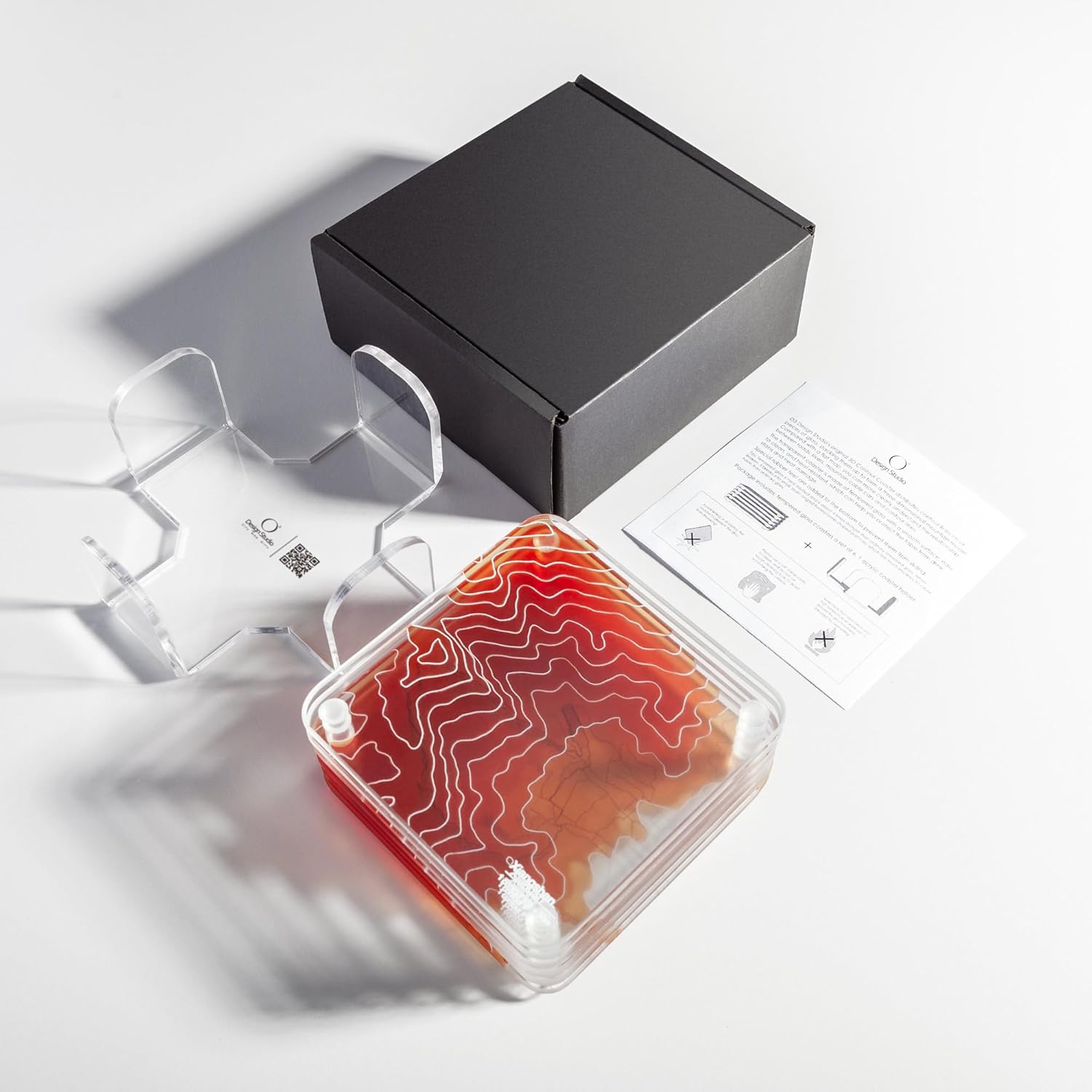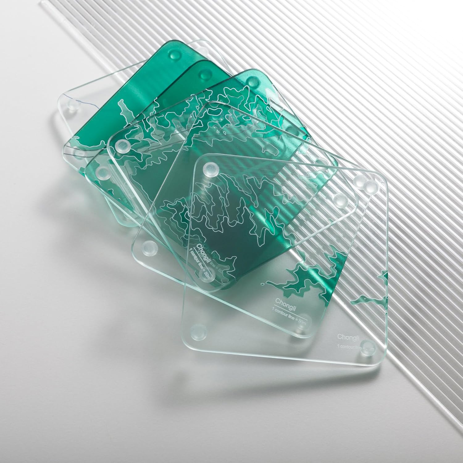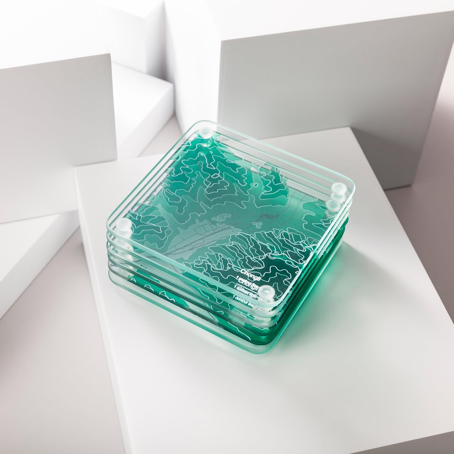 - 3D Contour Map Glass Drink Coasters of Mountains, Ski Resort:O3 Design Studio's original 3D contour coaster distributes contour lines on six coasters, making them stacked up to create a three-dimensional mountain。 Compared to printed maps, you can more clearly understand the relationship between roads, rivers, mountain cable cars and contour lines.