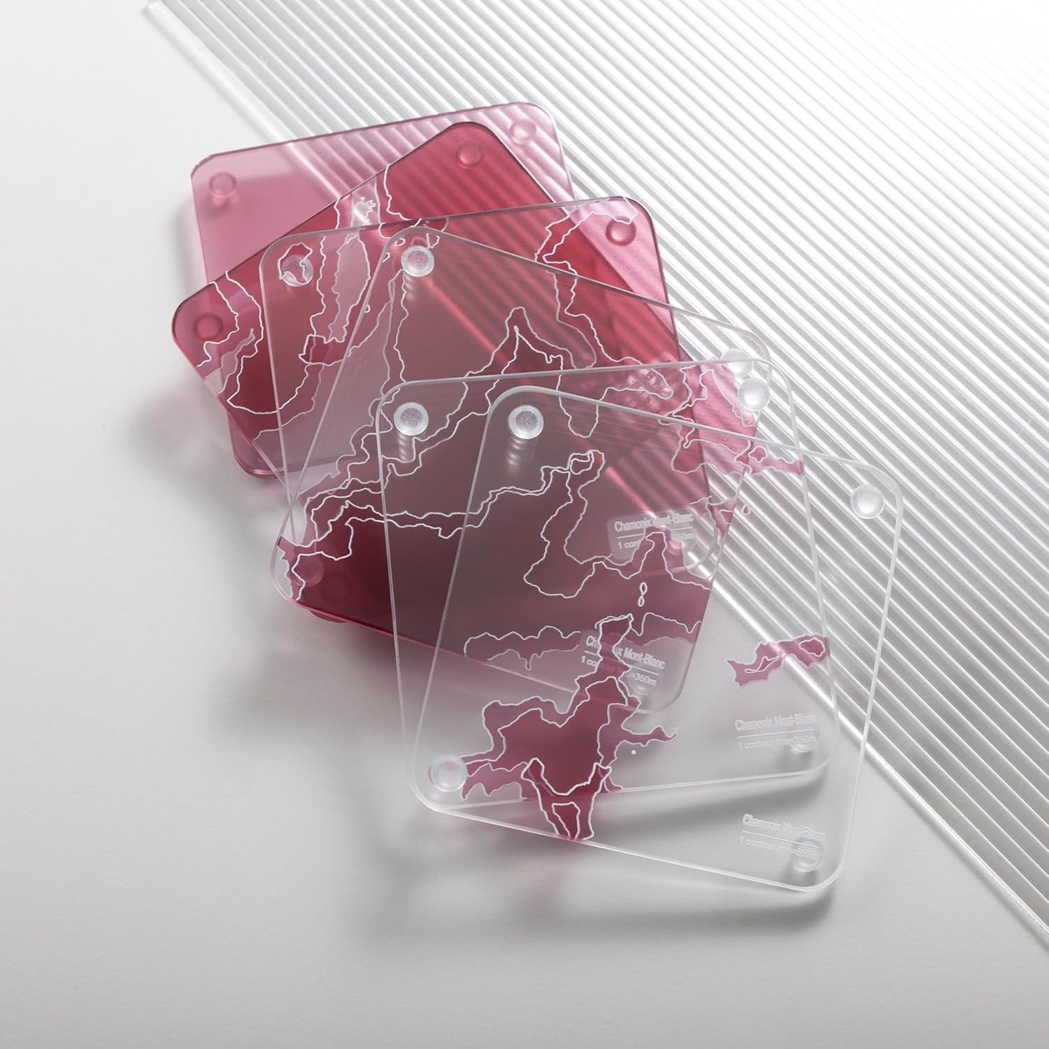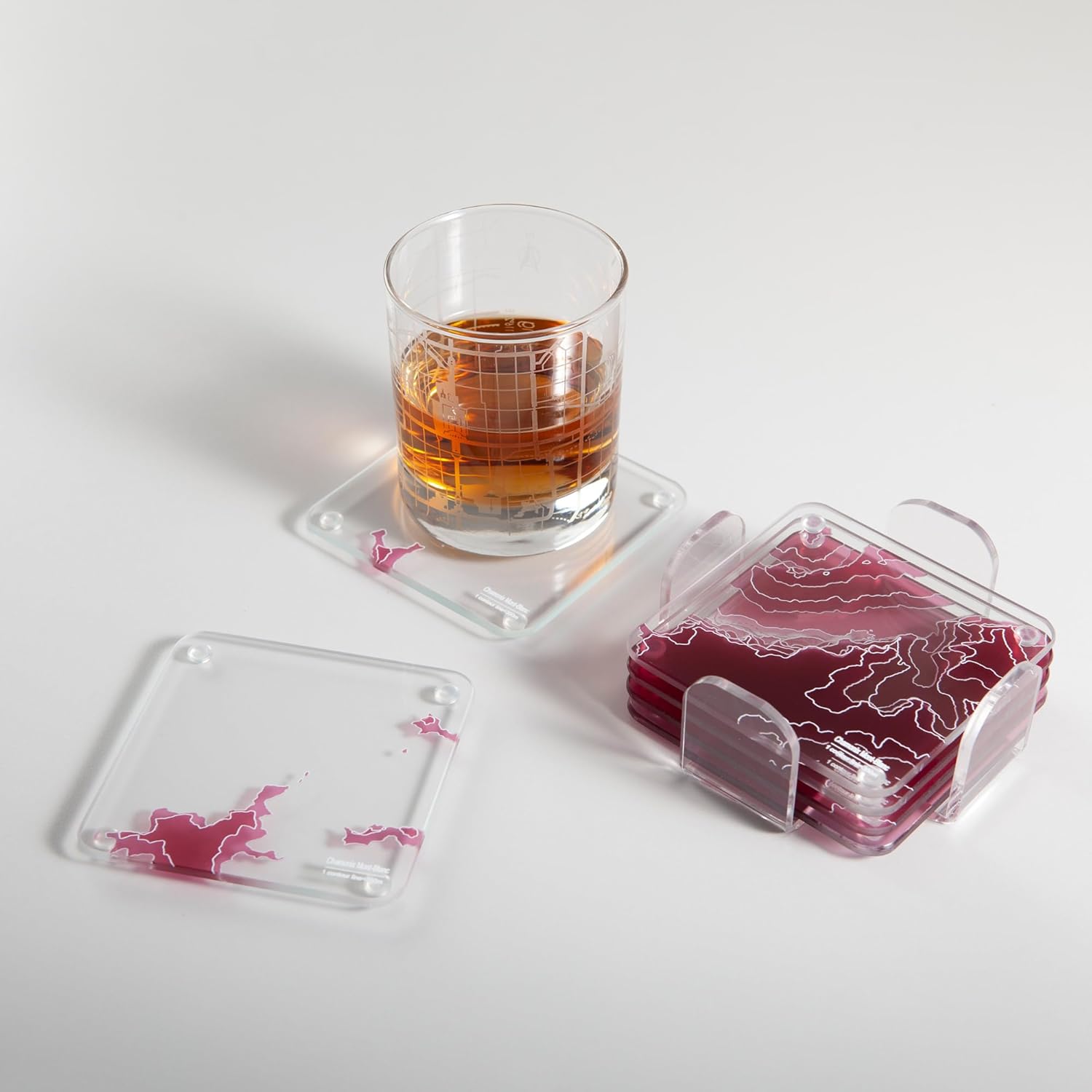 - 3D Contour Map Glass Drink Coasters of Mountains, Ski Resort:O3 Design Studio's original 3D contour coaster distributes contour lines on six coasters, making them stacked up to create a three-dimensional mountain。 Compared to printed maps, you can more clearly understand the relationship between roads, rivers, mountain cable cars and contour lines.
