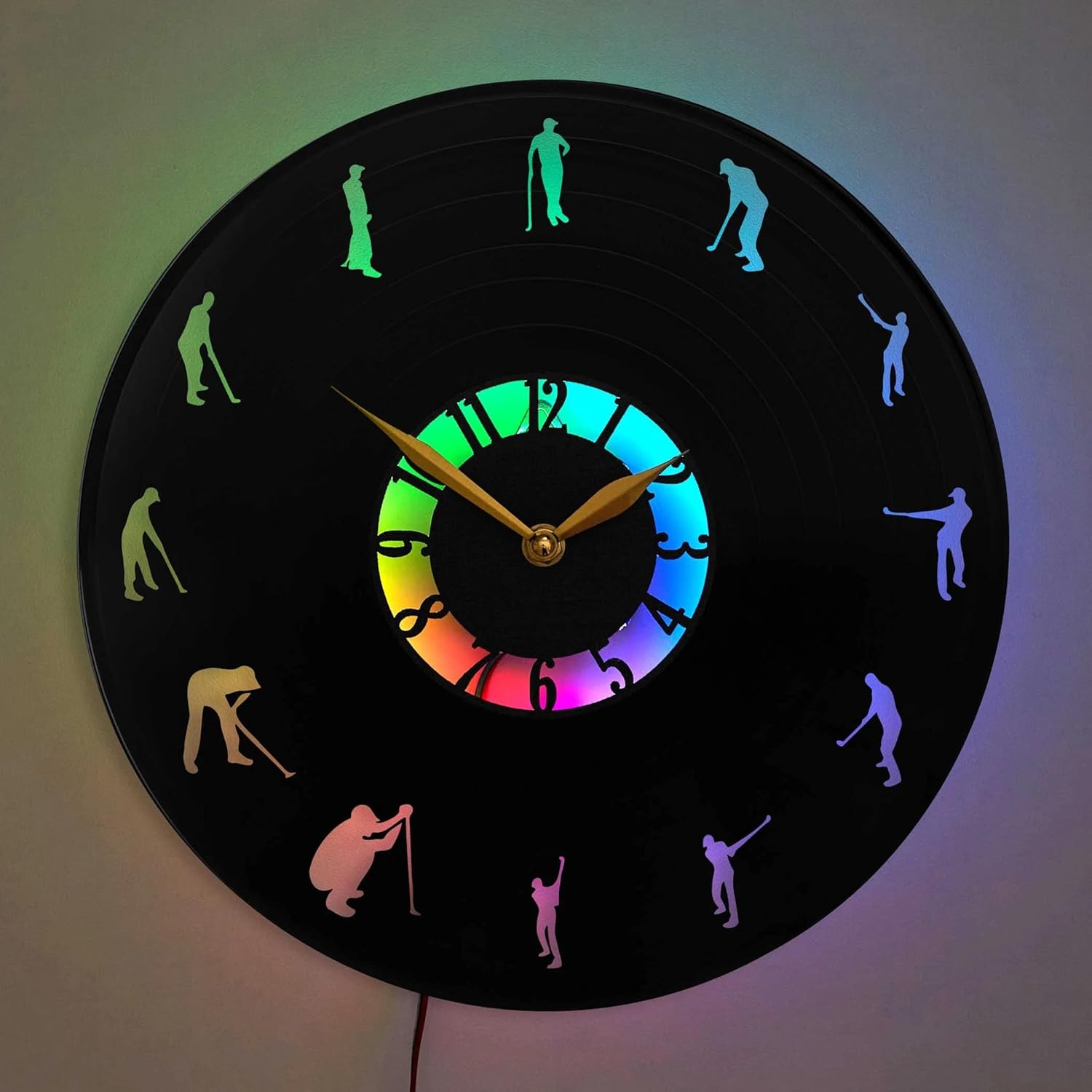 Golf LED Wall Clock – Unique Golf Swing Design, for Golf Enthusiasts, Stylish Golf Course Decor, Black