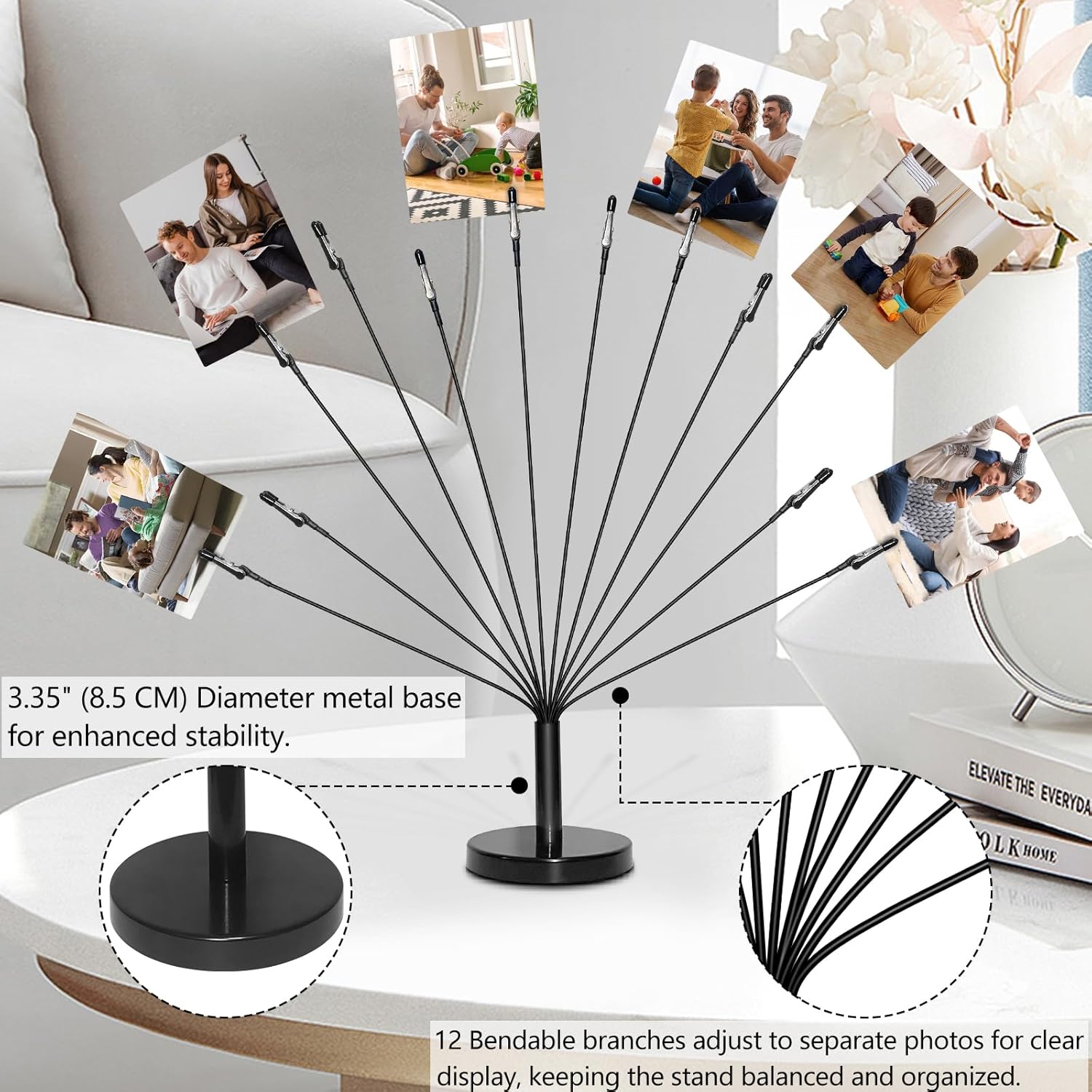 - Flexible Wire Design:The gift card tree holder features 12 bendable branches that can be adjusted to separate and showcase each photo clearly while keeping the stand balanced and organized.