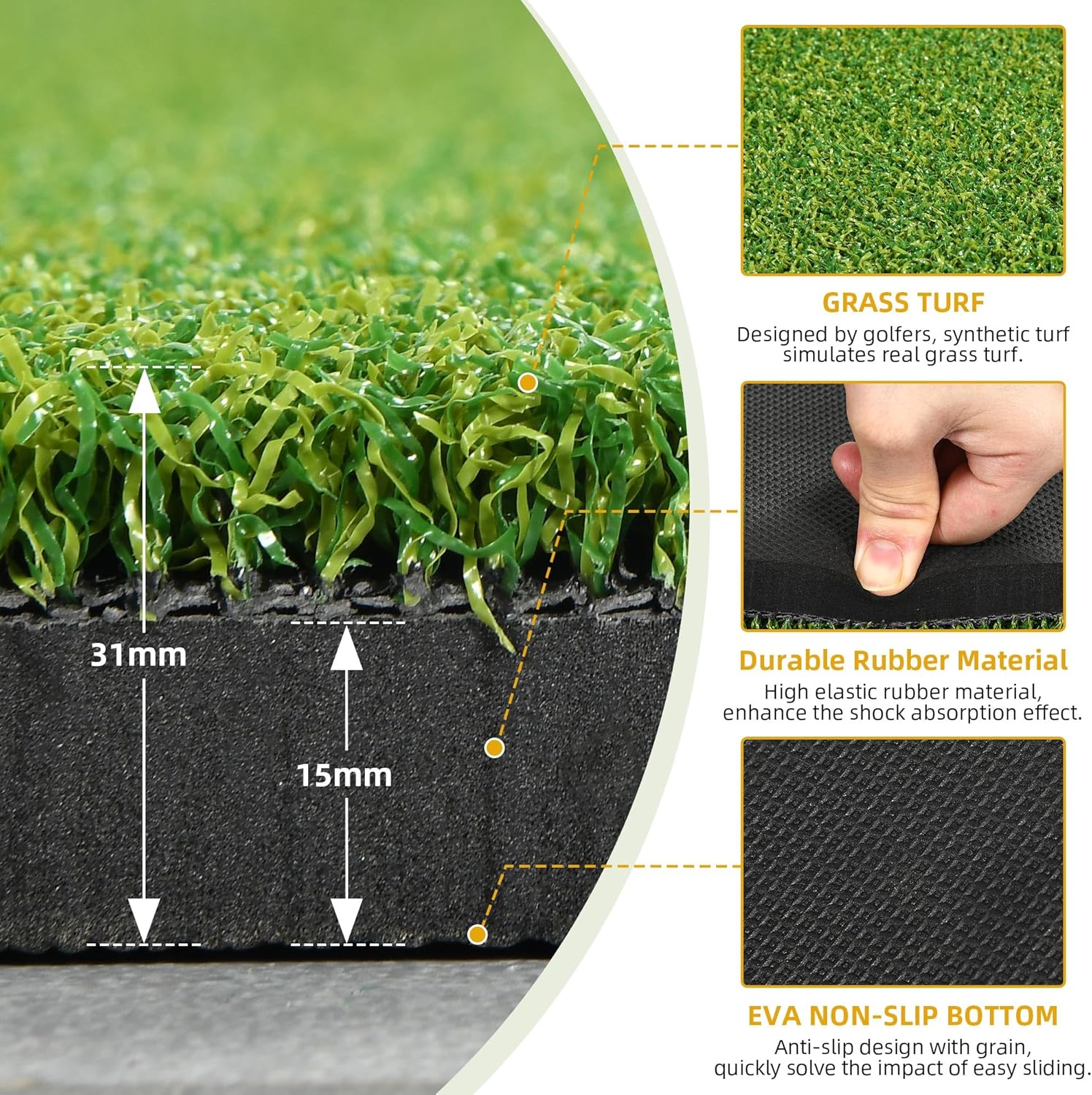 - Anti-skid EVA base with impact absorption: The grooved rubber base prevents sliding, capable of enduring thousands of swings. The golf mats practice outdoor anti-slip cushioning ensures exceptional stability and shock absorption during practice, resolving slippery surface issues