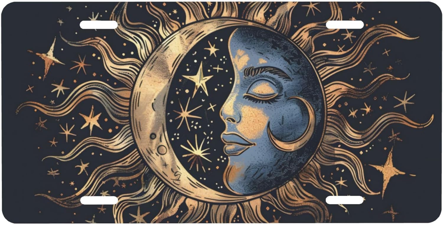 Front License Plate for Car Designs Galaxy Black Sun Moon Stainless License Plate Cover Holder for Men Women Metal Aluminum Decorative Accessory Vanity Tag Standard 6 X 12 Inch (4 Holes)