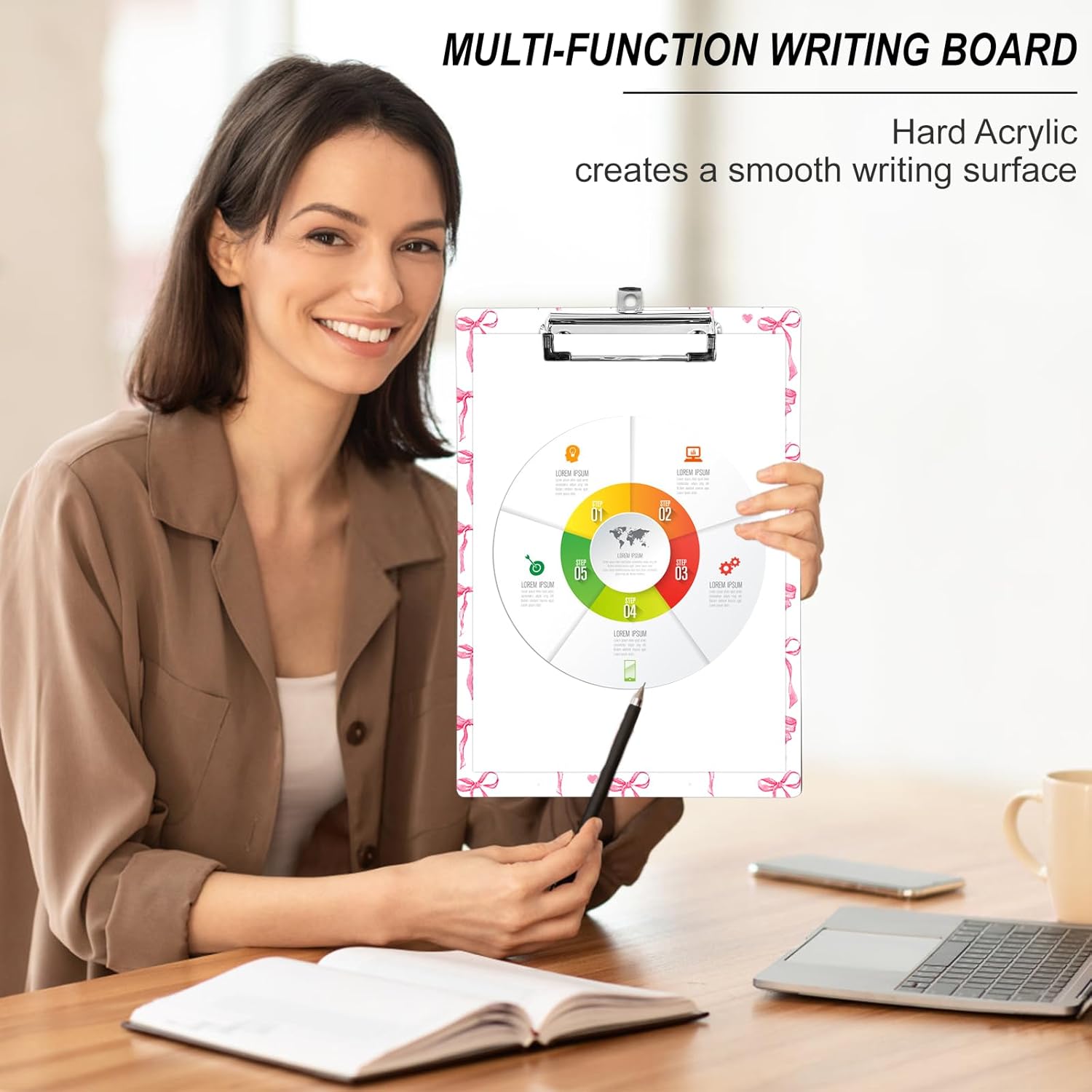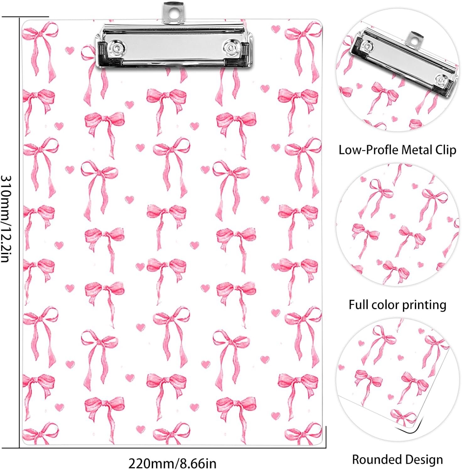 Plastic A4 Clipboards, Cute Fashion Clipboard Decorative, 12.2" x 8.7" Standard A4 Size Clipboards, Plastic Acrylic Clipboard for Teacher, Social Worker, Students,Women, Office Supplies(Butterfly Bow)