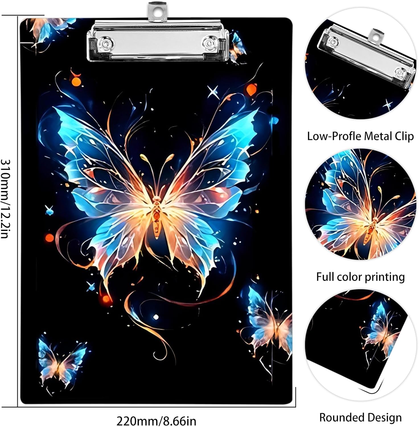 Plastic A4 Clipboards, Cute Fashion Clipboard Decorative, 12.2" x 8.7" Standard A4 Size Clipboards, Plastic Acrylic Clipboard for Teacher, Social Worker, Students,Women, Office Supplies (Butterfly)
