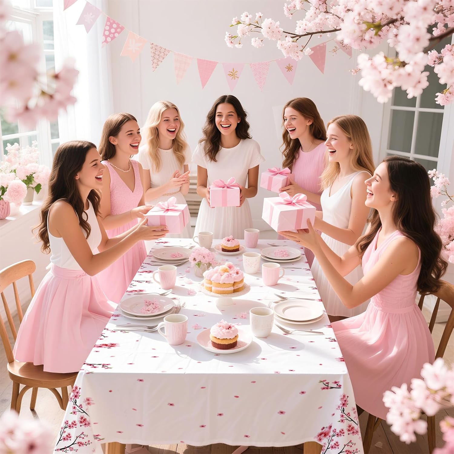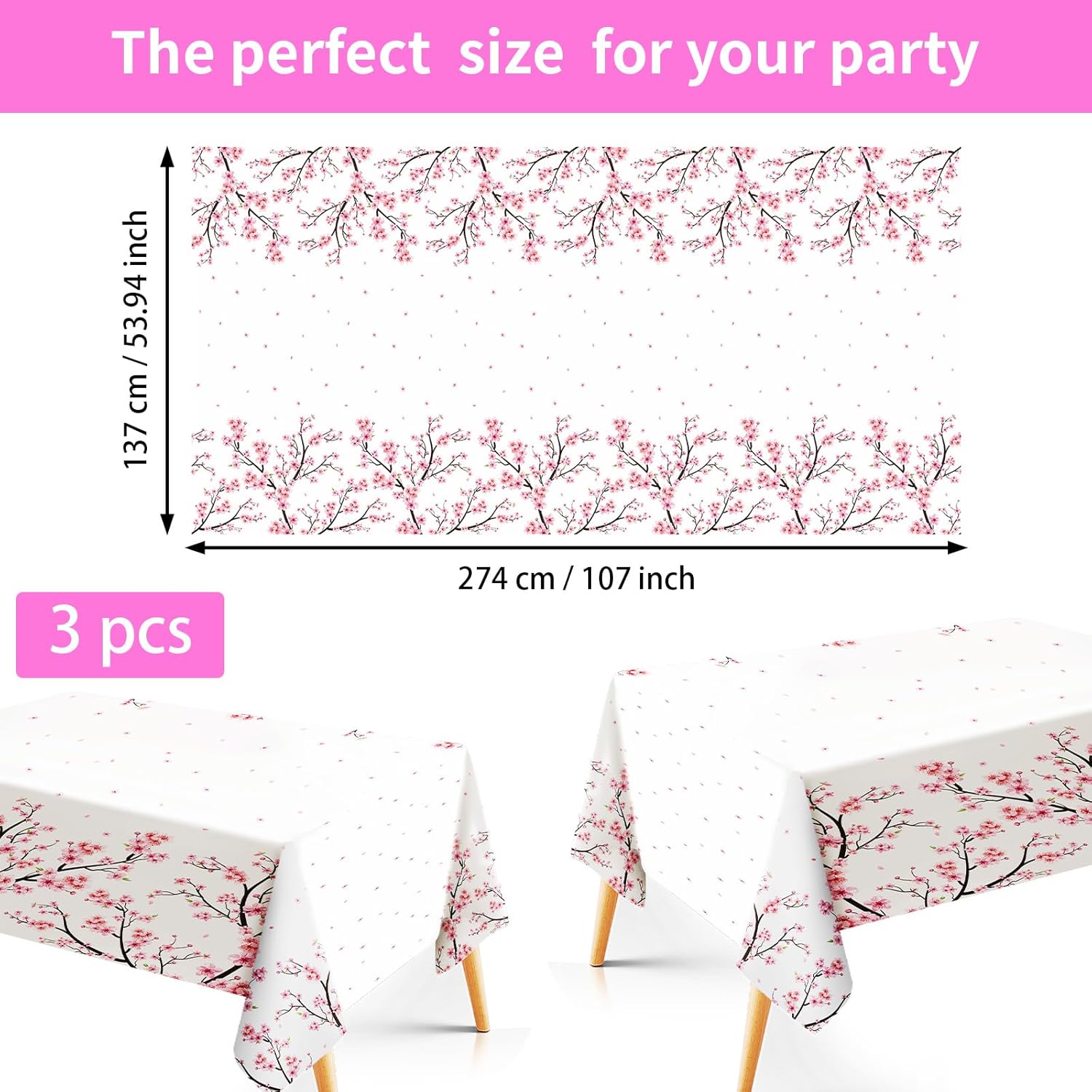 - 3Pcs Cherry Blossom Tablecloths: You'll receive 3 pcs cherry blossom plastic tablecloths, which measures about 274 x 137cm / 108 x 54 Inches, enough to cover most round, square or rectangular tables. These cherry blossom birthday tablecloths will add a splash of color to your cherry blossom themed party and create unforgettable memories
