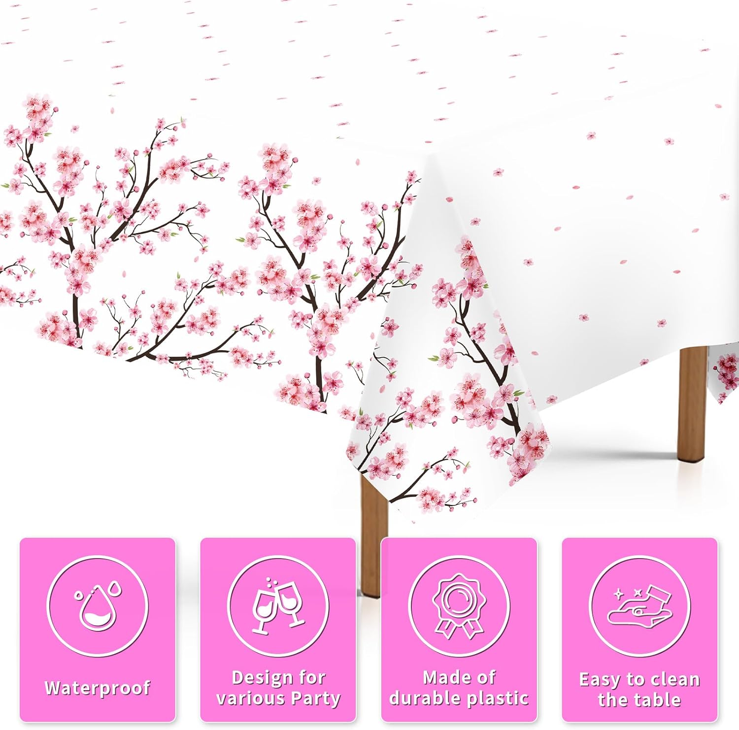 - Durable Material: All our japanese cherry tablecloths are made of thick, high-quality PE plastic material, good waterproof and oil resistance, which can block food debris, oil and water stains, thus protecting the table surface. The cherry plastic tablecloth is light weight, easy to carry and store. And the handprint patterns and colors are well-printed and do not fade, providing you with a fashion birthday party