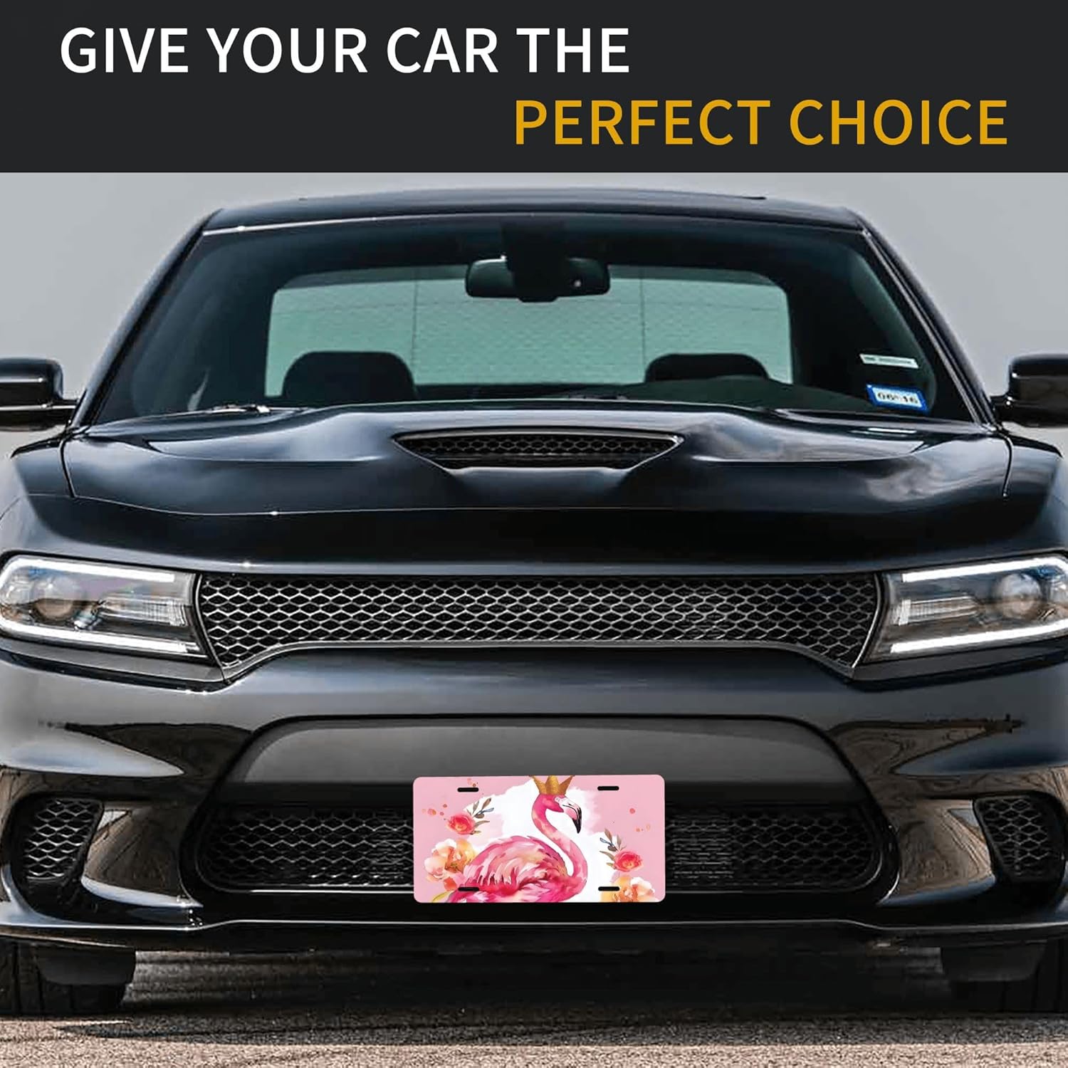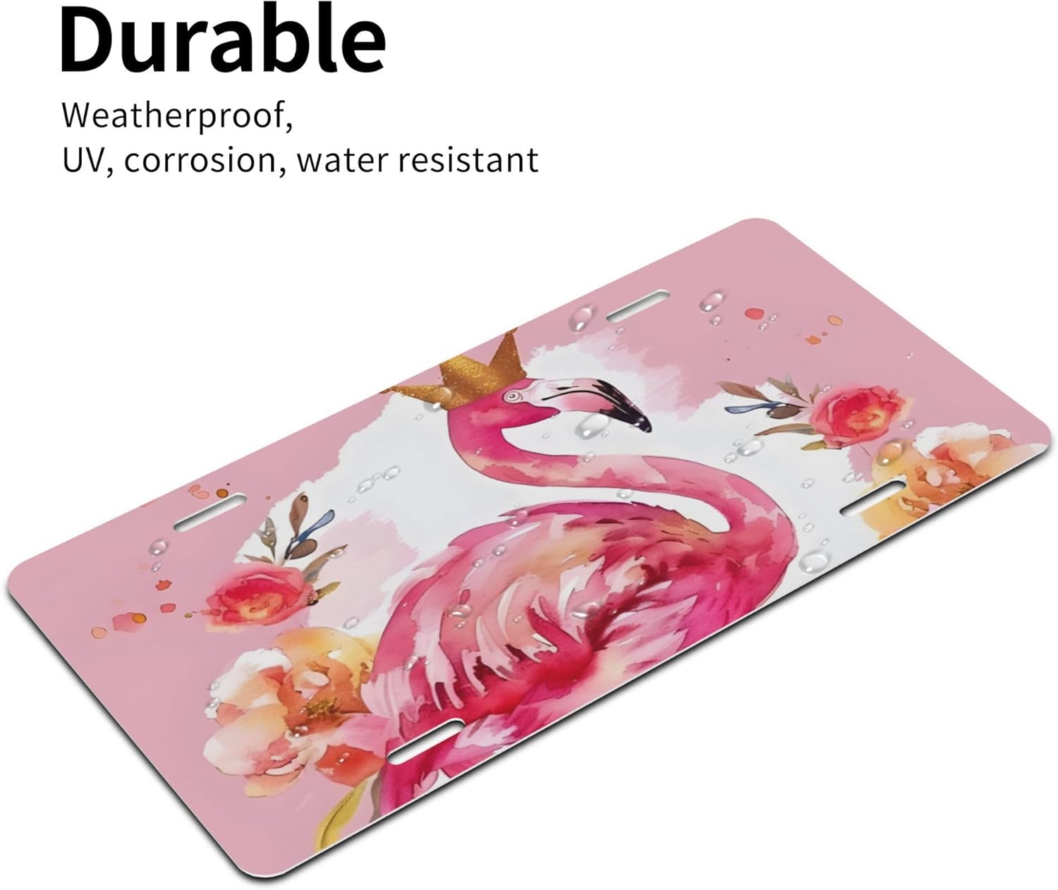 Front License Plate for Car Designs Pink Animal Flamingo Flower Stainless License Plate Cover Holder for Men Women Metal Aluminum Decorative Accessory Vanity Tag Standard 6 X 12 Inch (4 Holes)