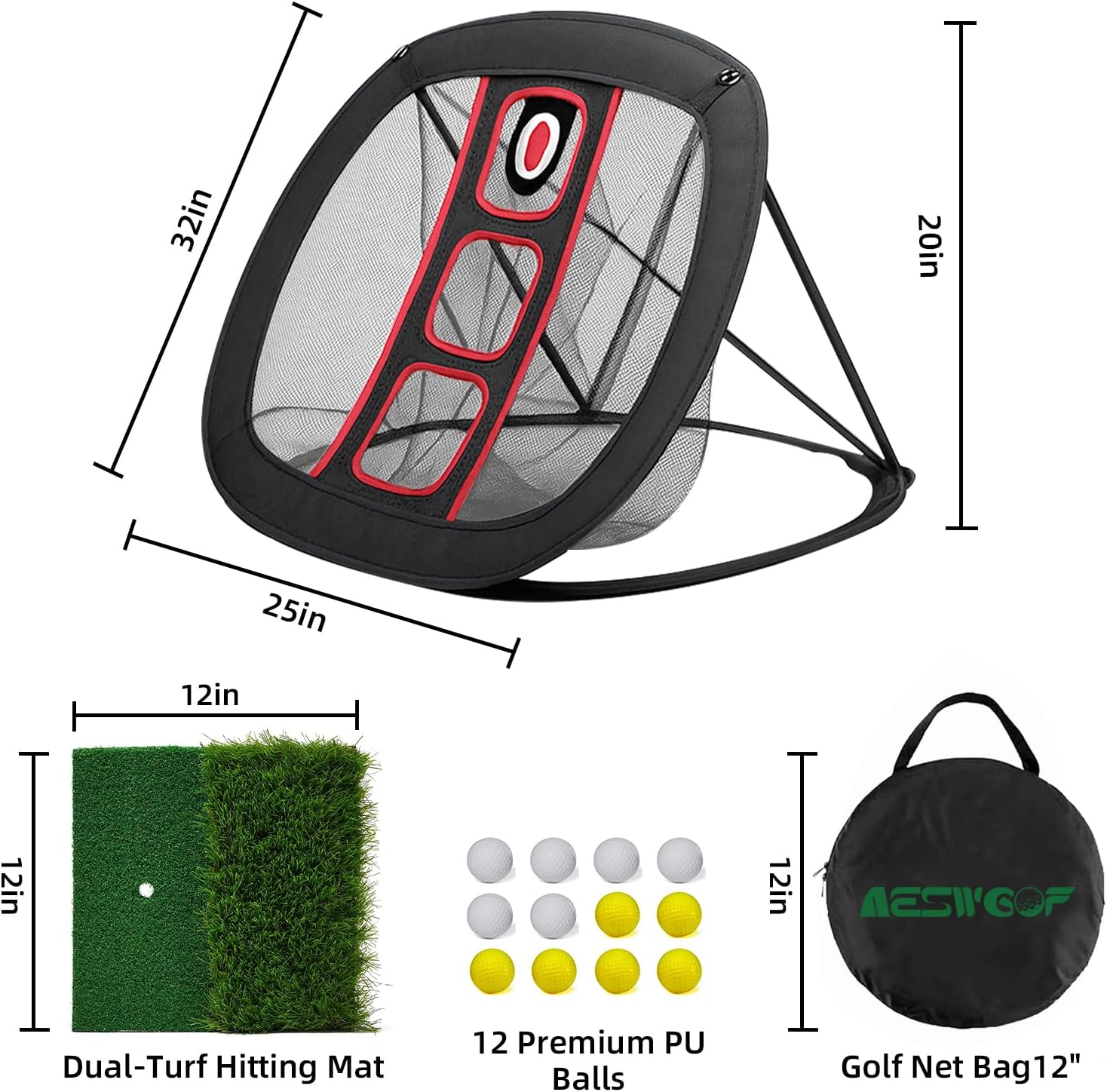 Golf Chipping Net Set with Mat & 12 Practice Balls – All-in-One Golf Training Kit – Portable, Easy Setup for Backyard & Indoor Use – Great Gift for Golfers and Beginners