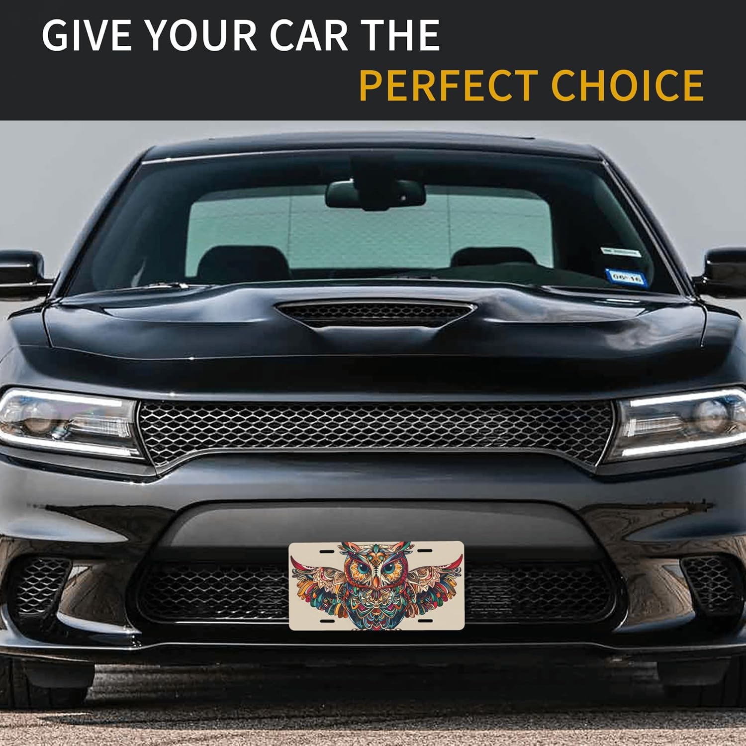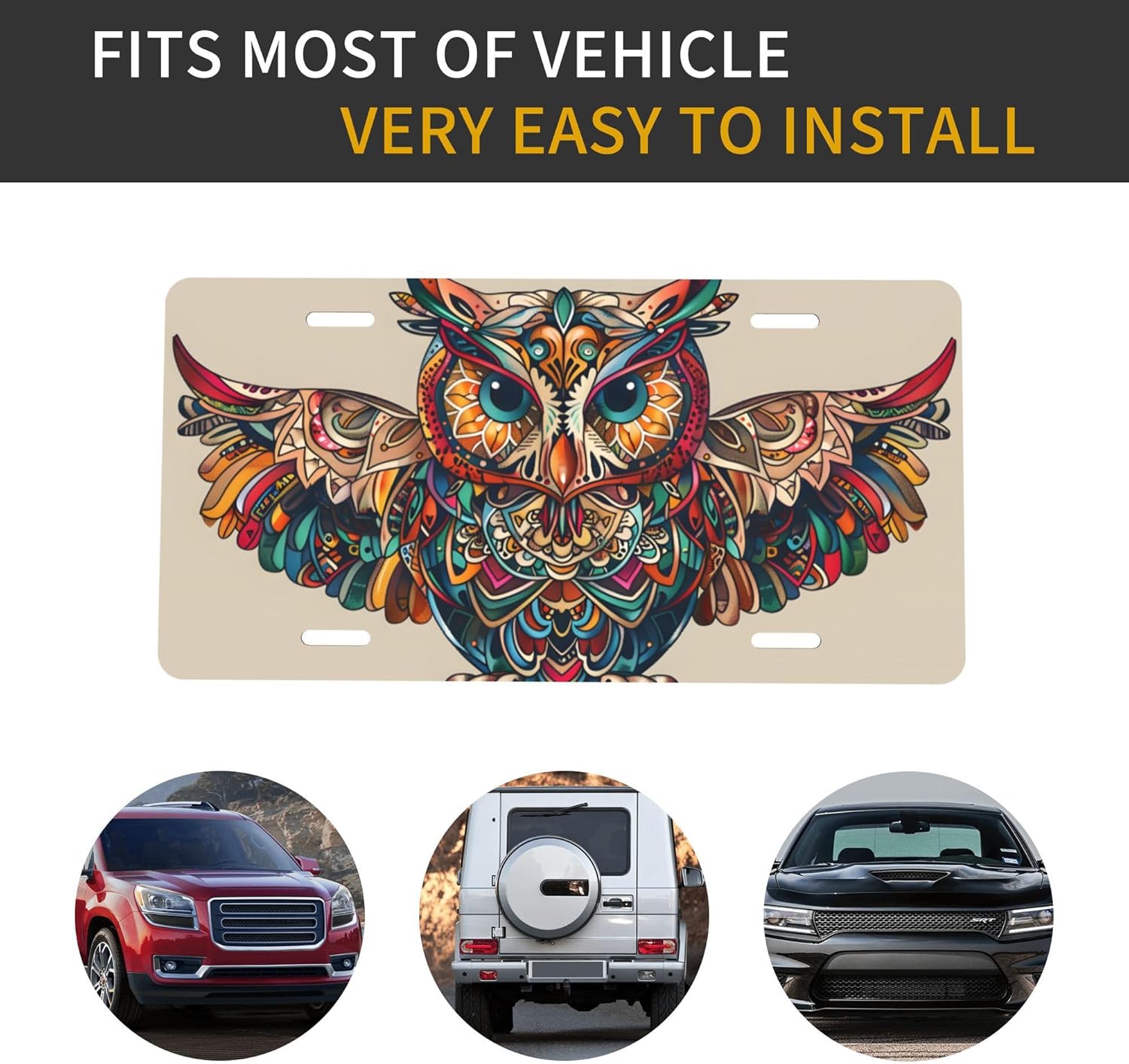 Front License Plate for Car Designs Ethnic Abstract Animals Owl Stainless License Plate Cover Holder for Men Women Metal Aluminum Decorative Accessory Vanity Tag Standard 6 X 12 Inch (4 Holes)