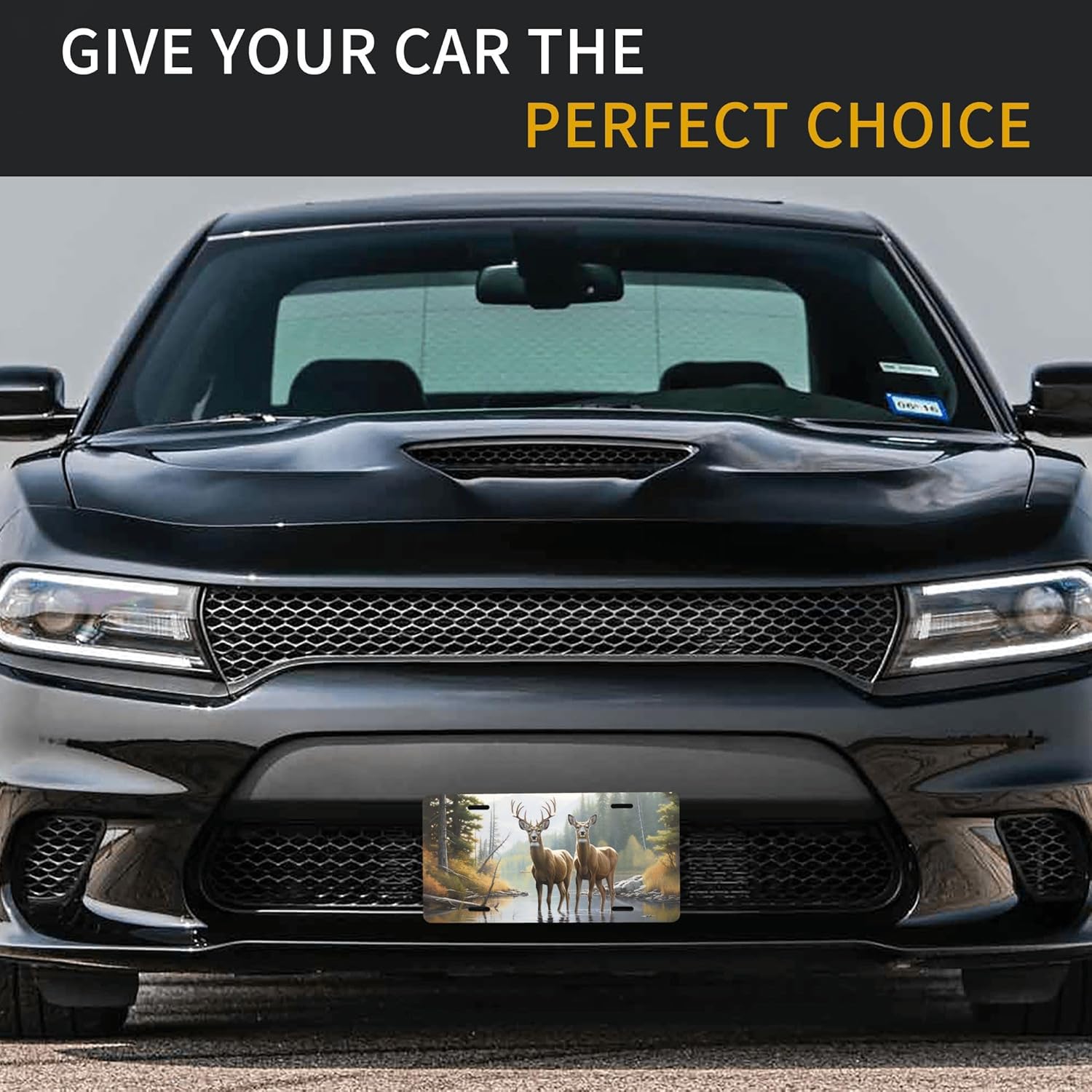 Front License Plate for Car Designs Forest Lake Animal Deer Stainless License Plate Cover Holder for Men Women Metal Aluminum Decorative Accessory Vanity Tag Standard 6 X 12 Inch (4 Holes)