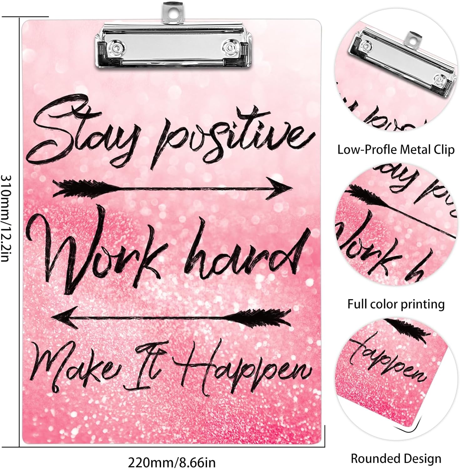 Plastic A4 Clipboards, Cute Fashion Clipboard Decorative, 12.2" x 8.7" Standard A4 Size Clipboards, Plastic Acrylic Clipboard for Teacher, Social Worker, Students,Women, Office Supplies (Positive)