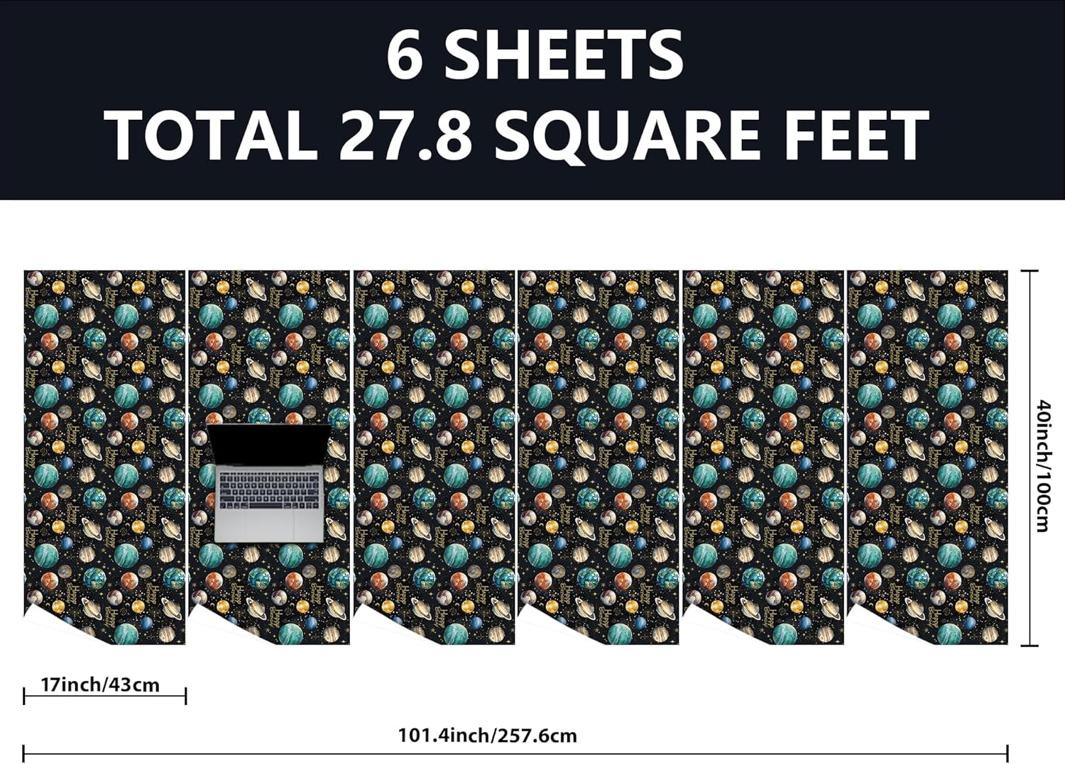- Mini Roll: Each Roll includes 6 sheets, Each sheet measures 17 "x 40" /43 cm x 100 cm,Total 17'×20FT, making it large enough to wrap gifts of all sizes.
