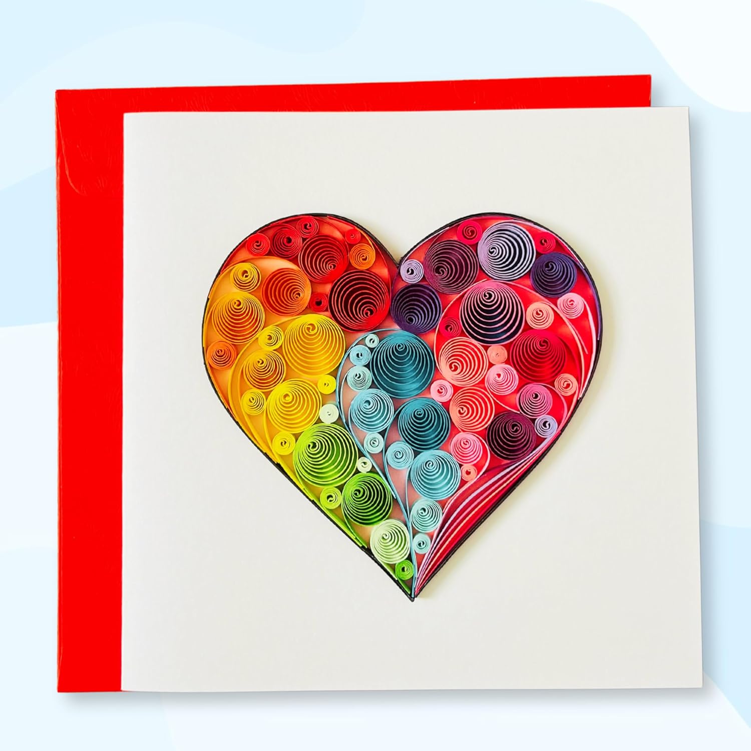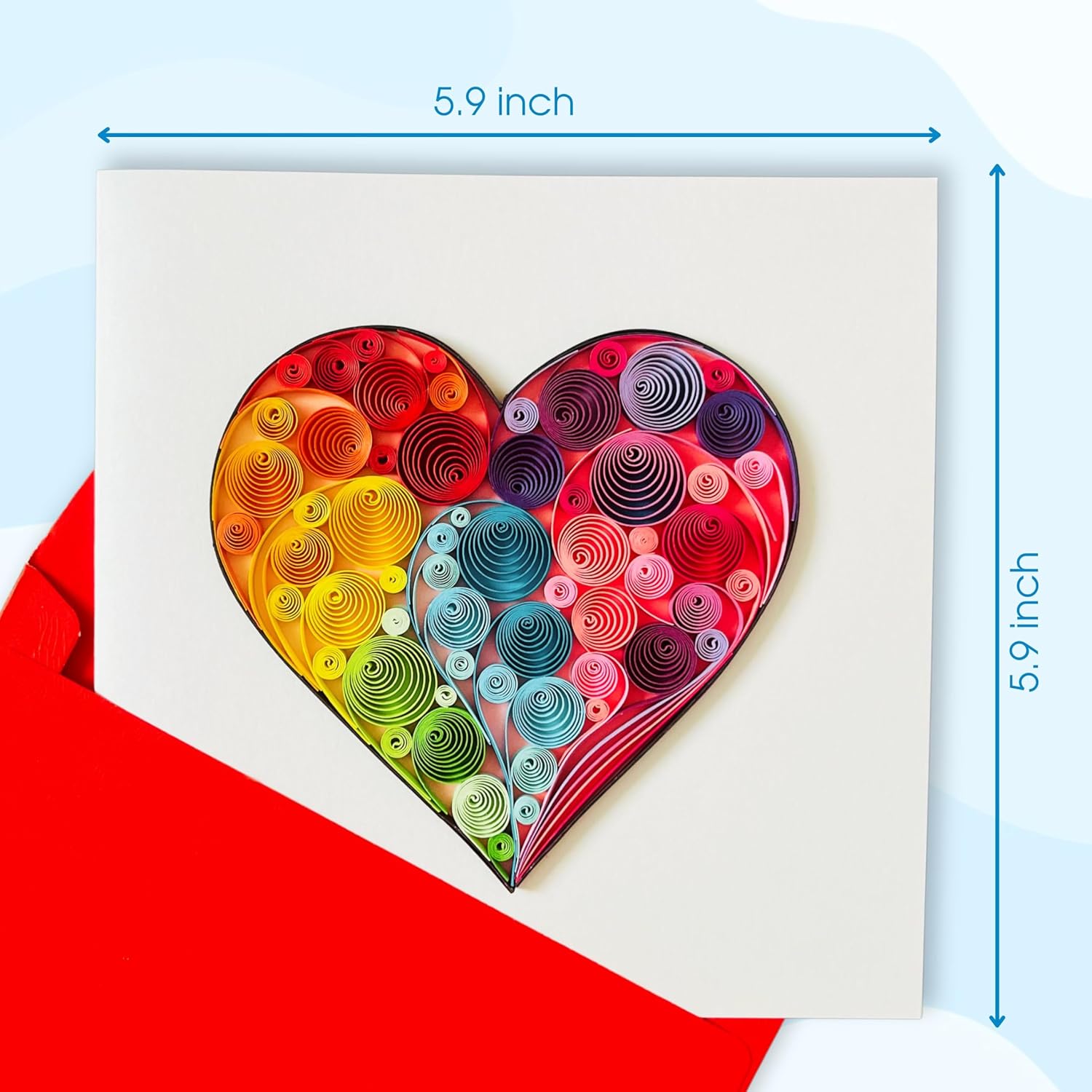Quilling Cards, handmade card, quilled cards with Handmade Art for all occasions: quilling birthday card for women, Birthday card, mother... colorful heart design (Colorful heart)