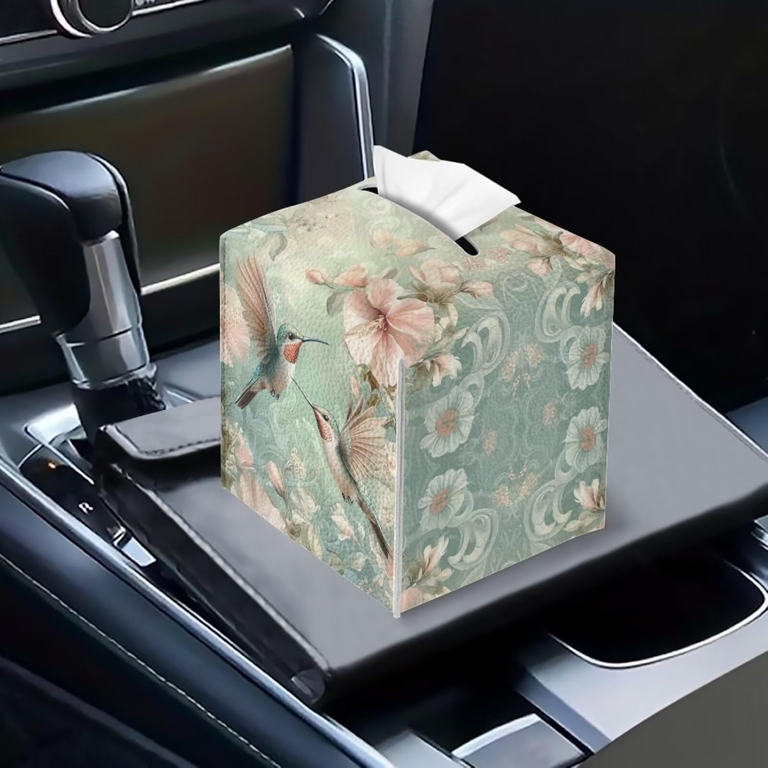 Square Tissue Box Cover PU Leather Tissue Box Holder 5x5x5 inch Waterproof Protective Cover for Modern Home Car Office Hotel Decor Hummingbird Pattern