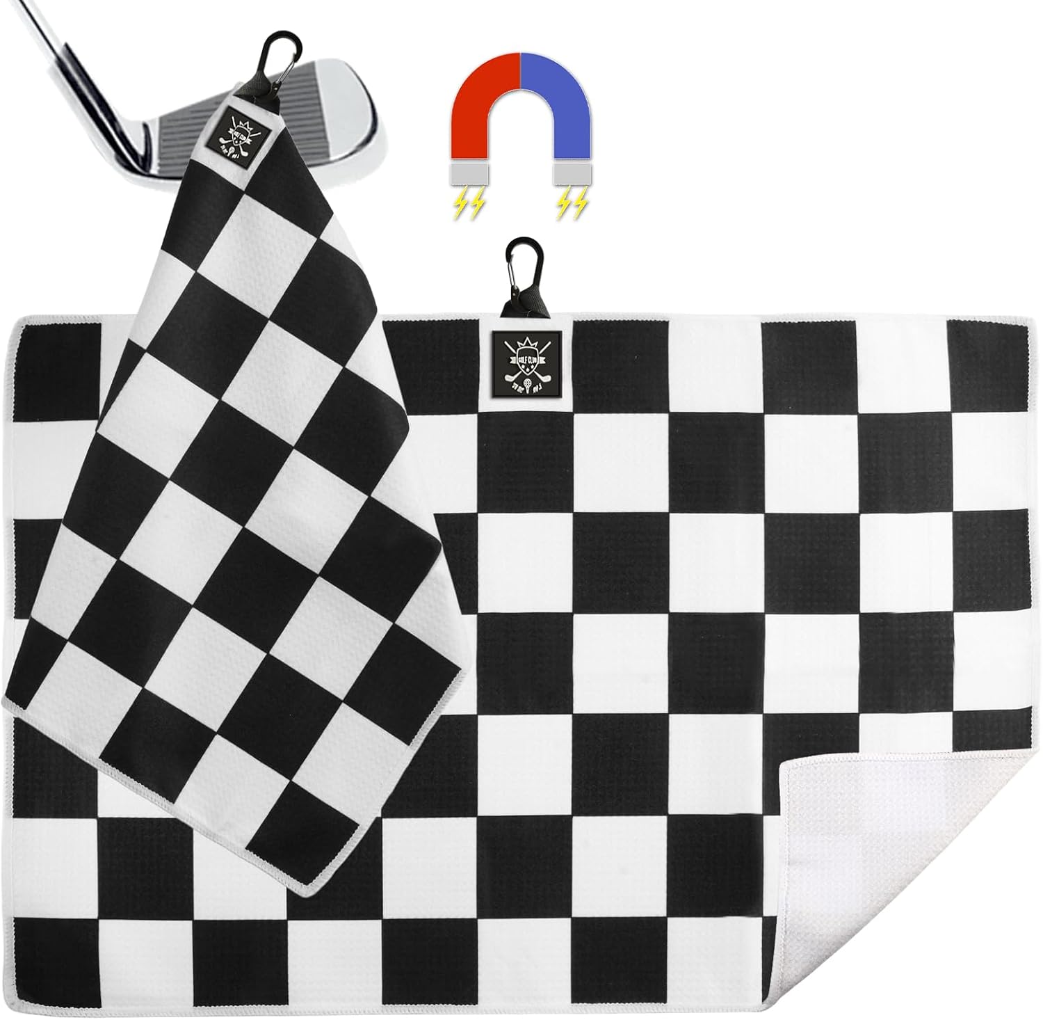 - 【Dual-Purpose & Stylish】: One side sports trendy colorblock squares to elevate your golf look, while the pure white reverse side offers a spotless wipe for clubs. The Viddett golf towel with magnet stands out on the course with its eye-catching, dual-tone design