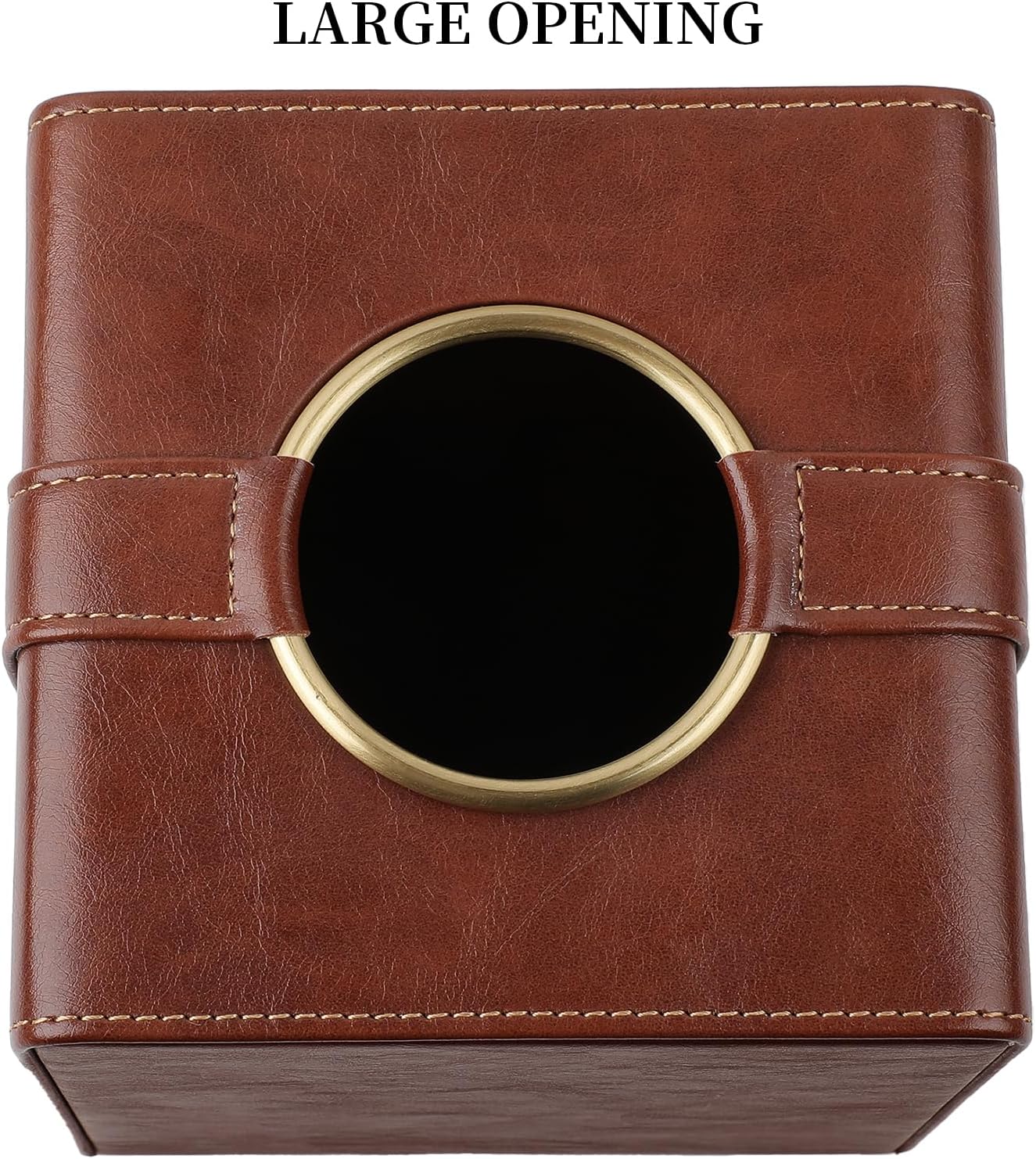 Luxury Square Tissue Box Cover, PU Leather Tissue Box Holder with Magnetic Closure and Gold Decorative Grommets for Bathroom Bedroom, Decorative Elegant Cube Tissue Holder (Brown)