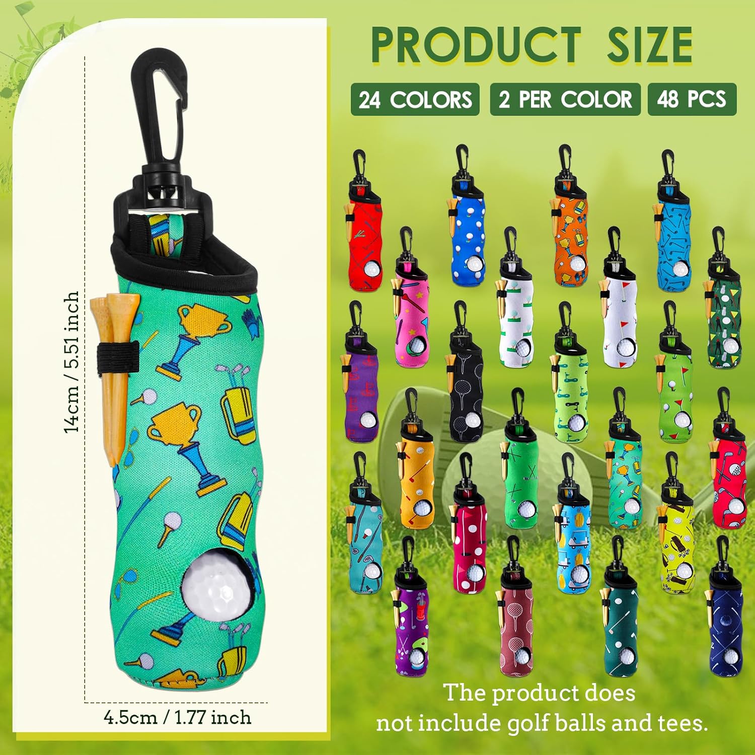 WILLBOND 48 Pcs Golf Ball Tee Holder Neoprene Golf Ball Pouch Golfs Balls Carry Bag Multicolor Portable Golfs Accessories for Men and Women, 24 Colors