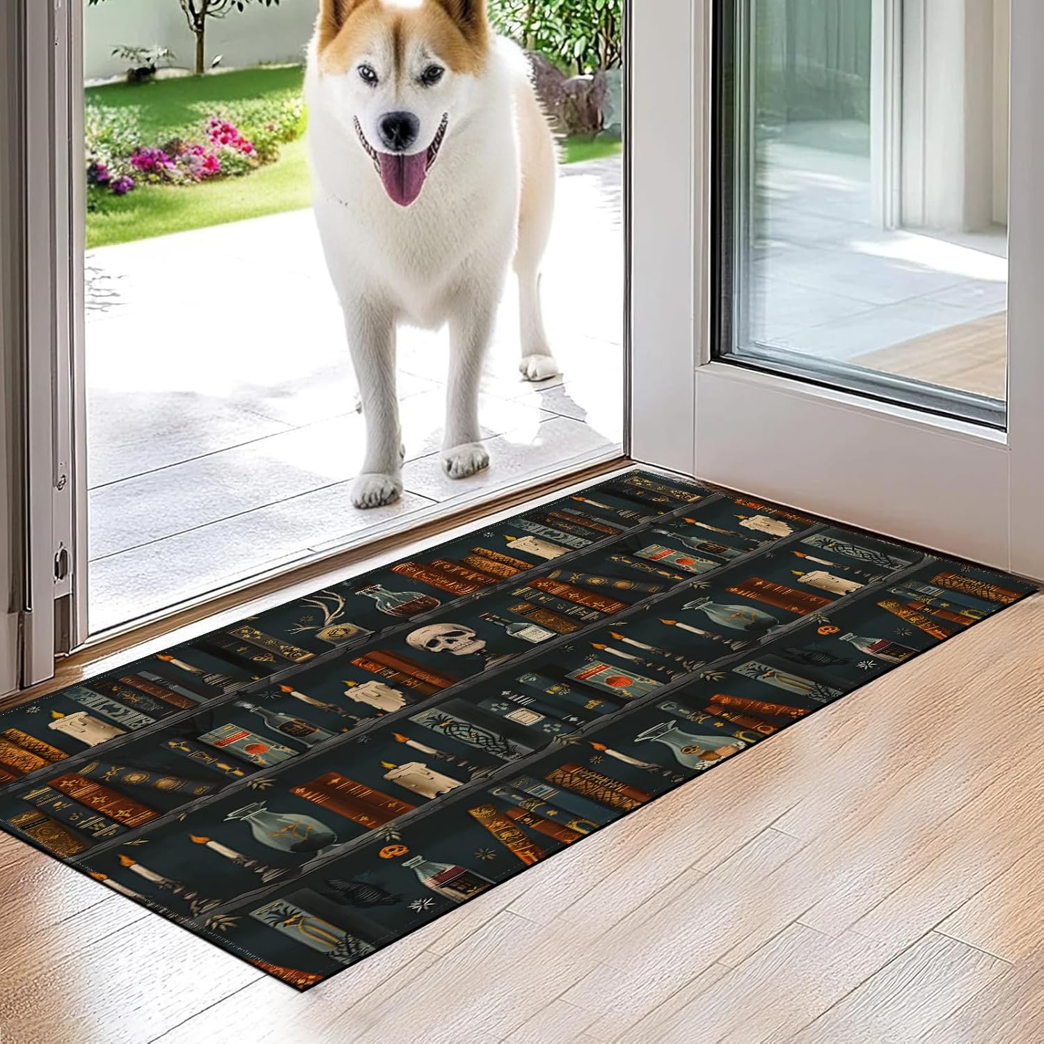 Gothic Book Indoor Door Mat,Vintage Books and Skull Floor Doormat,17x29.5in,Non Woven Non Slip Rubber Backing Goth Rug for Porch Insider,Bedroom,Halloween Party,Doormats Gifts,Rv Camper Decor