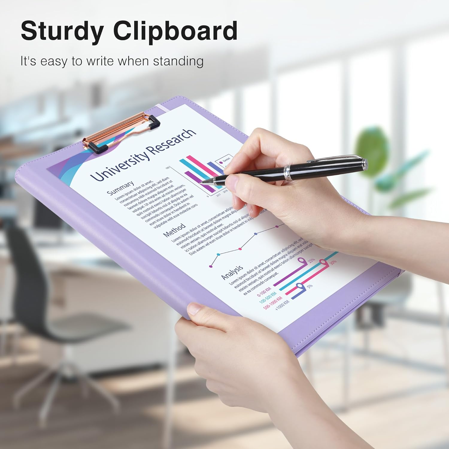 - 【Premium Material】 It is made of high-quality PU leather with reinforced stitching, making it far more durable than cardboard alternatives. The leather cover is easy to clean, and the rose gold metal clip securely holds 80–100 sheets even when writing while standing.