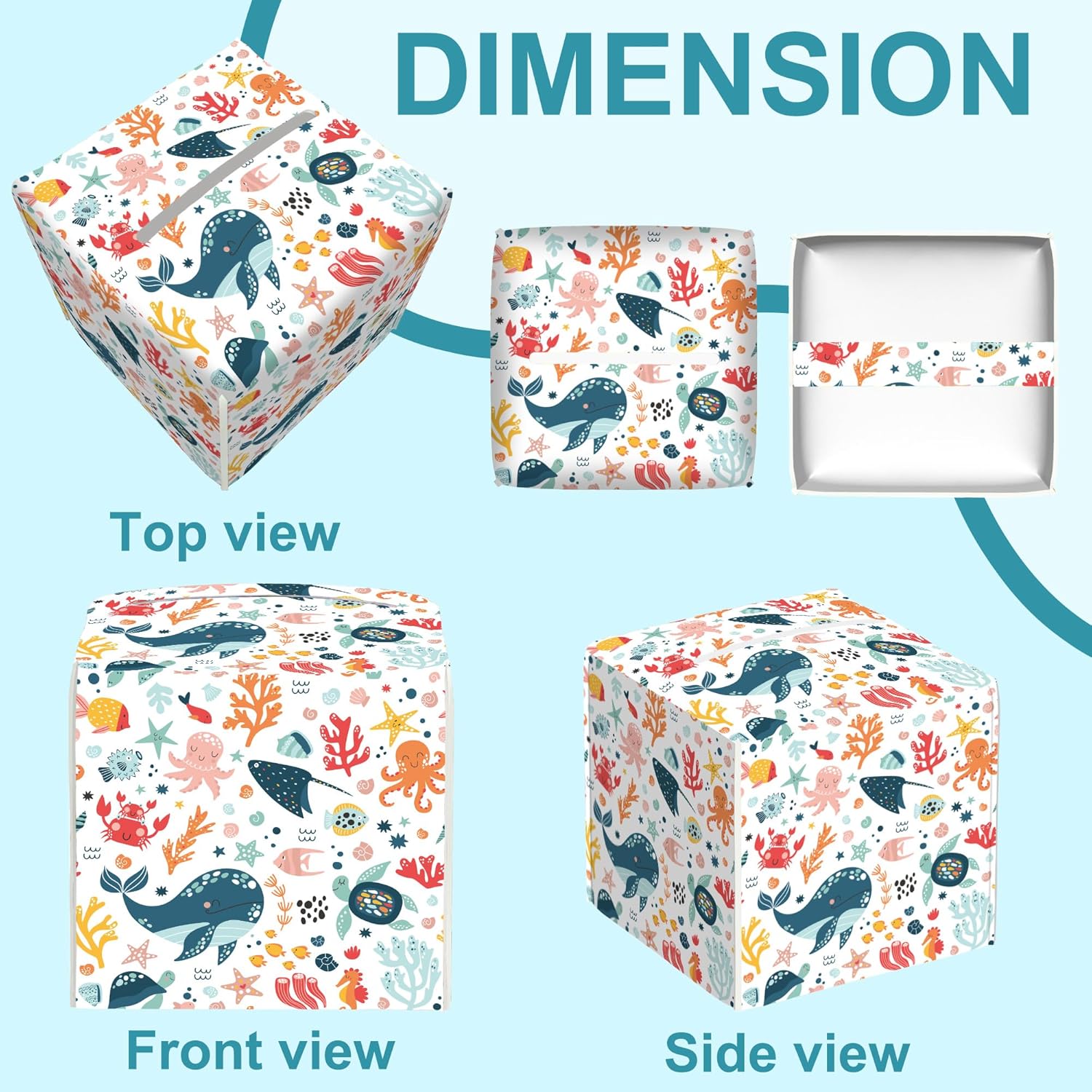 Cute Sea Life Tissue Box Cover,Whale Tissue Box Holder Square with Bottom Belt,Waterproof Leather Organizer Portable Decorative Facial Paper for Bedroom Dresser Night Stand Office,5.2" x 5.2" x 5.2"