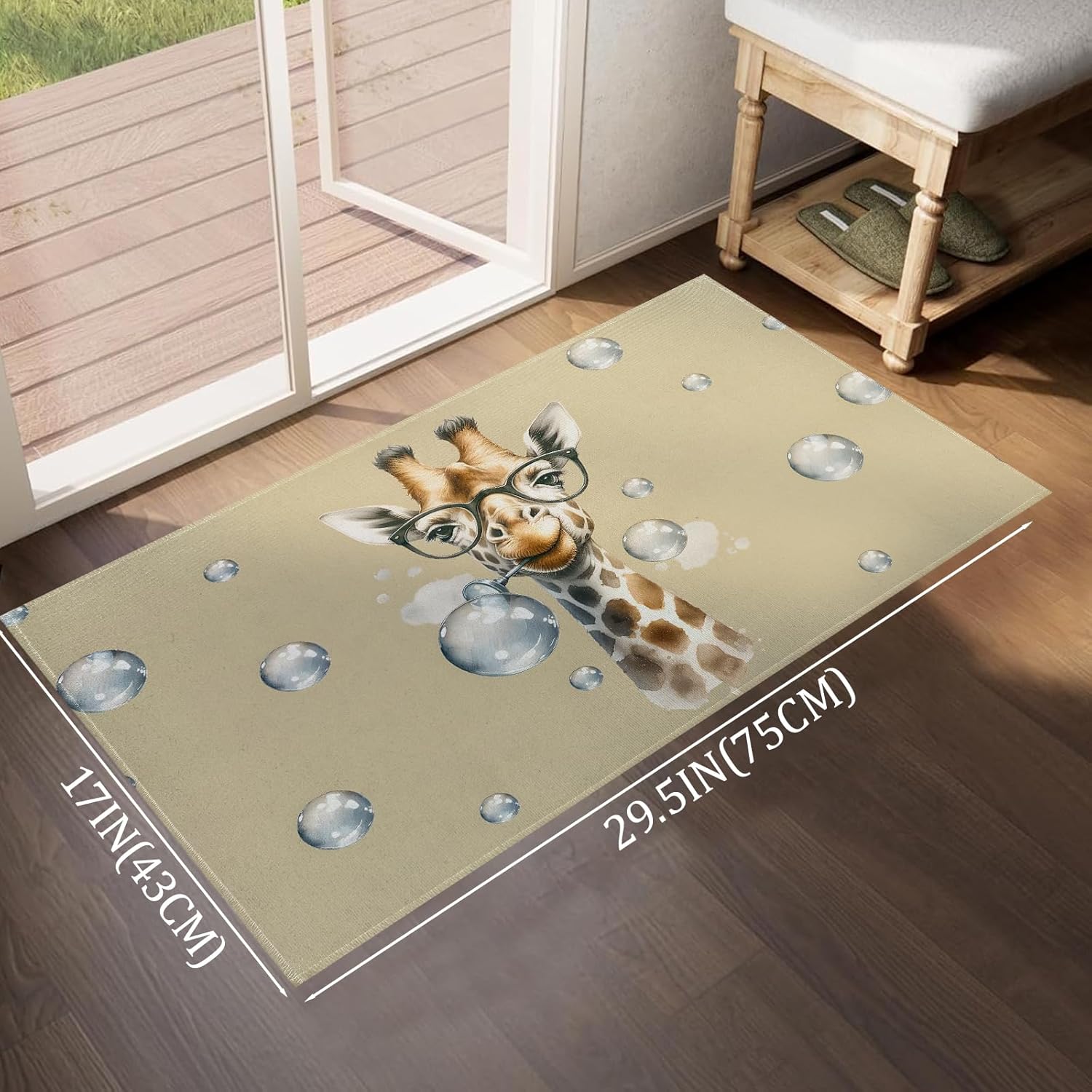 Funny Giraffe Indoor Door Mat,Cute Wild Animal Face Floor Doormat,17x29.5in,Non Woven Non Slip Rubber Backing Watercolor Rug for Porch Insider,Bedroom,Kitchen,Doormats Gifts,Rv Camper Decor