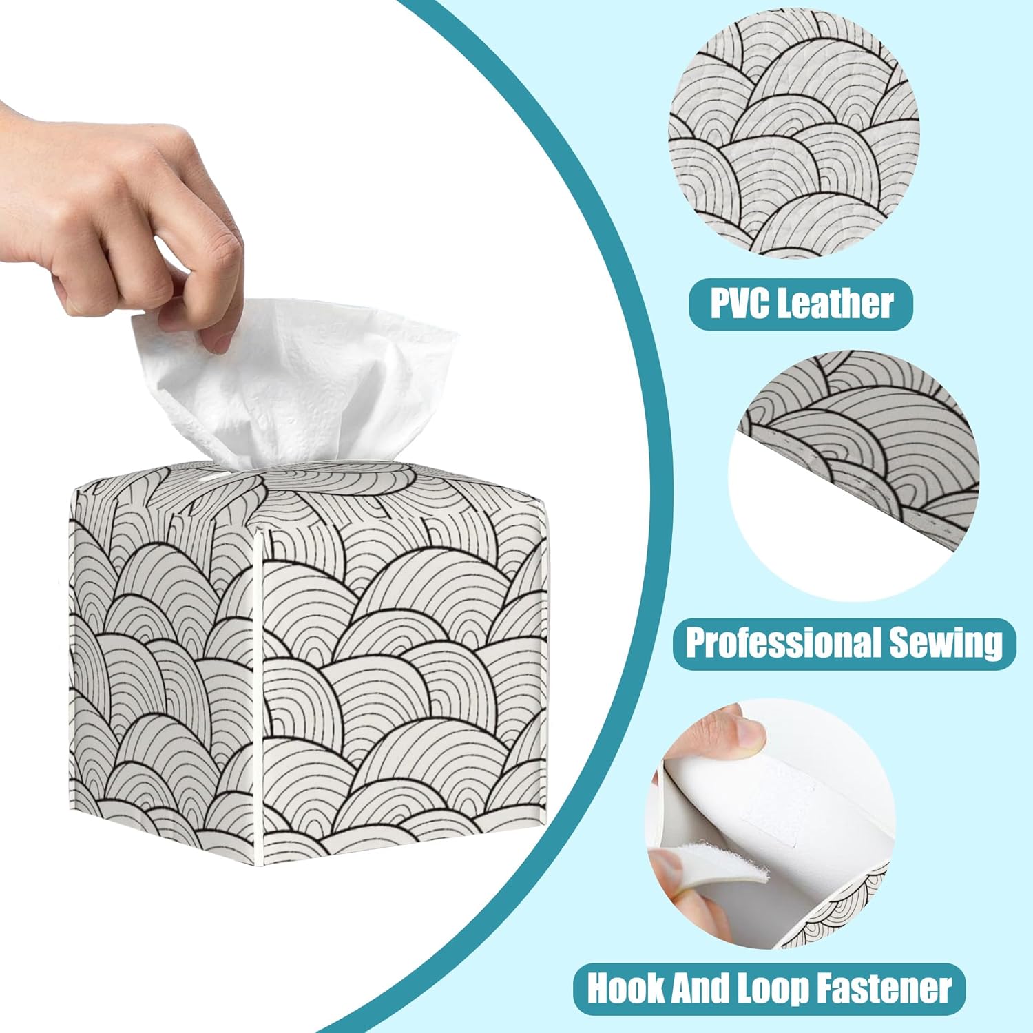 - Square Tissue Box Cover: Tissue box cover measures 5.2"L x 5.2"W x 5.2"H,reasonable size can accommodate most standard square tissue boxes. It is designed to be compact, which can not only save space and keep the desktop tidy but also provide clean tissues at any time