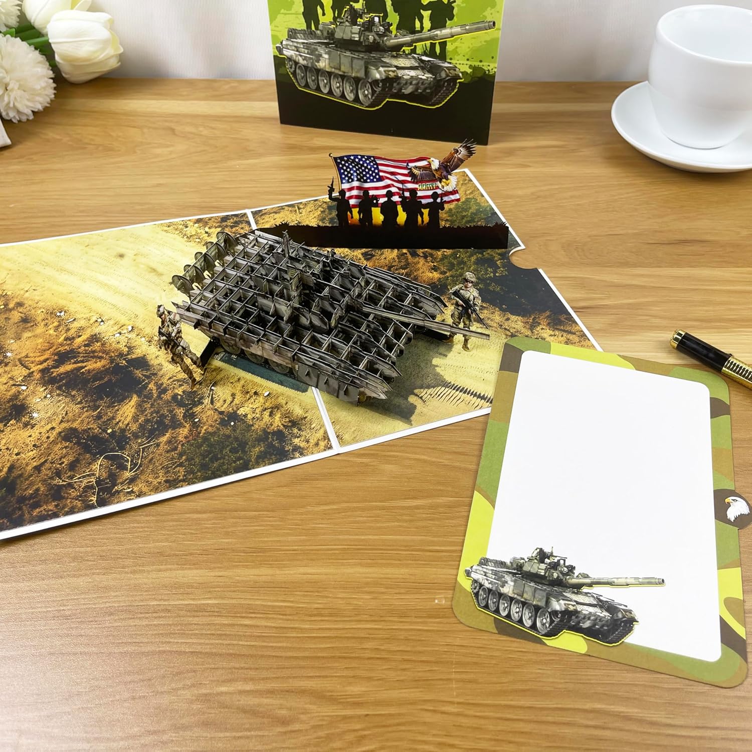 - Powerful Army Tank Design: The Army 3D Popup Card features a bold and detailed tank emerging from the battlefield — a striking tribute to strength, bravery, and service.