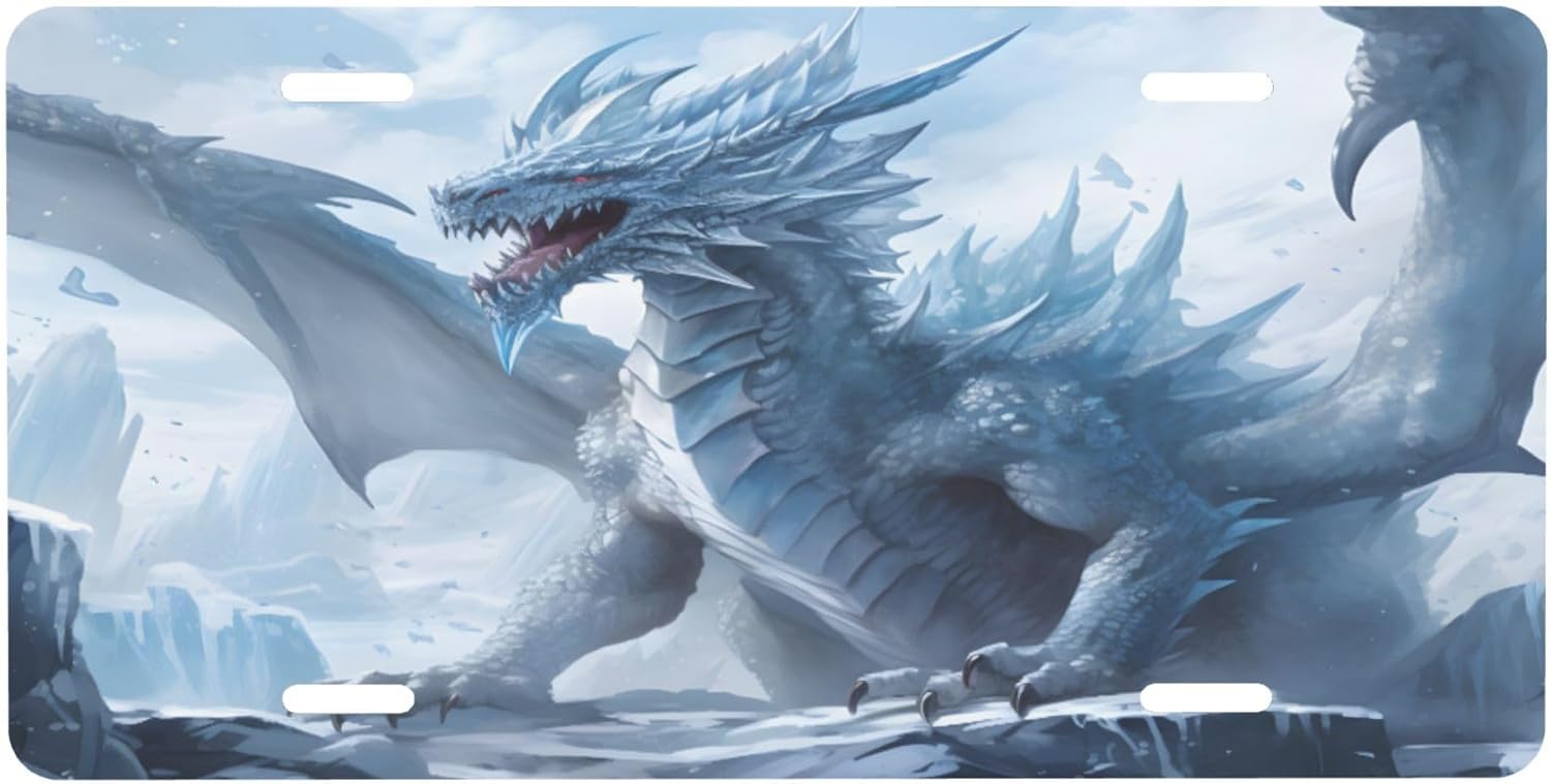 Dragon Animal Blue License Plate Funny Aluminum Front License Plates Decorative Waterproof Rust-Free Metal Car Plate Covers for Women Men Car Tag Accessories fit Truck SUV Rv 12 X 6 Inch