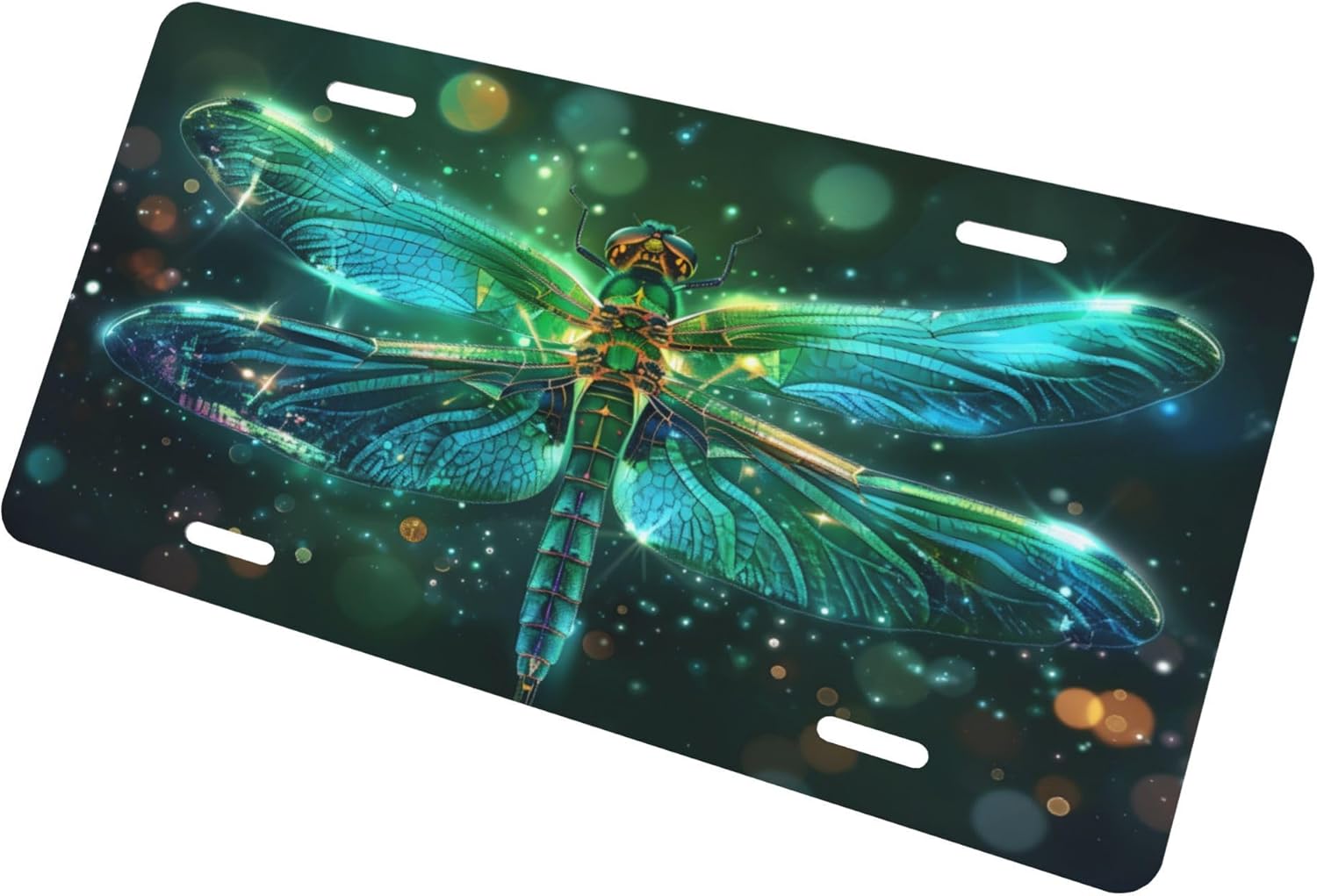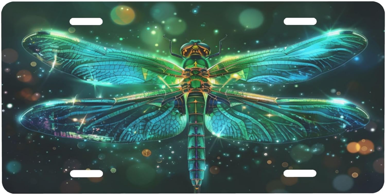 Animal Dragonfly Art License Plate Funny Aluminum Front License Plates Decorative Waterproof Rust-Free Metal Car Plate Covers for Women Men Car Tag Accessories fit Truck SUV Rv 12 X 6 Inch