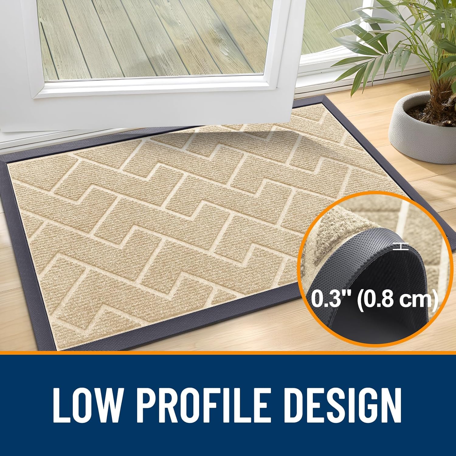 OLANLY Front Door Mat Indoor Outdoor Entrance, Waterproof All-Season, All-Weather Doormat, Sturdy Natural Rubber, Low Profile, Easy Clean Patio Porch Entryway Mat, Herringbone Brick (Beige, 71x23)