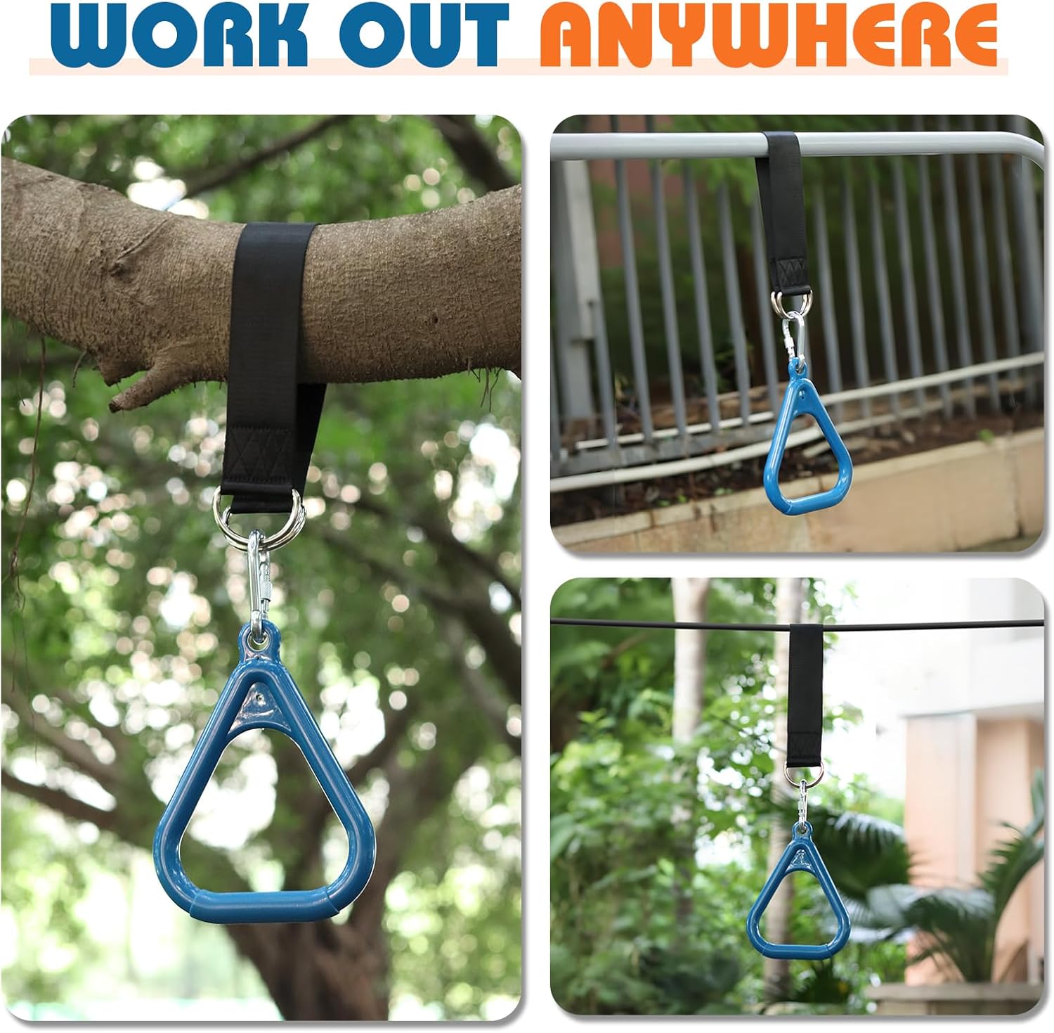 - 【WORK OUT ANYWHERE】- Transform your space into a mini gym at any time! Just hang these gymnastic rings from a swing set, a ninja line, your door frame or a tree branch to get started