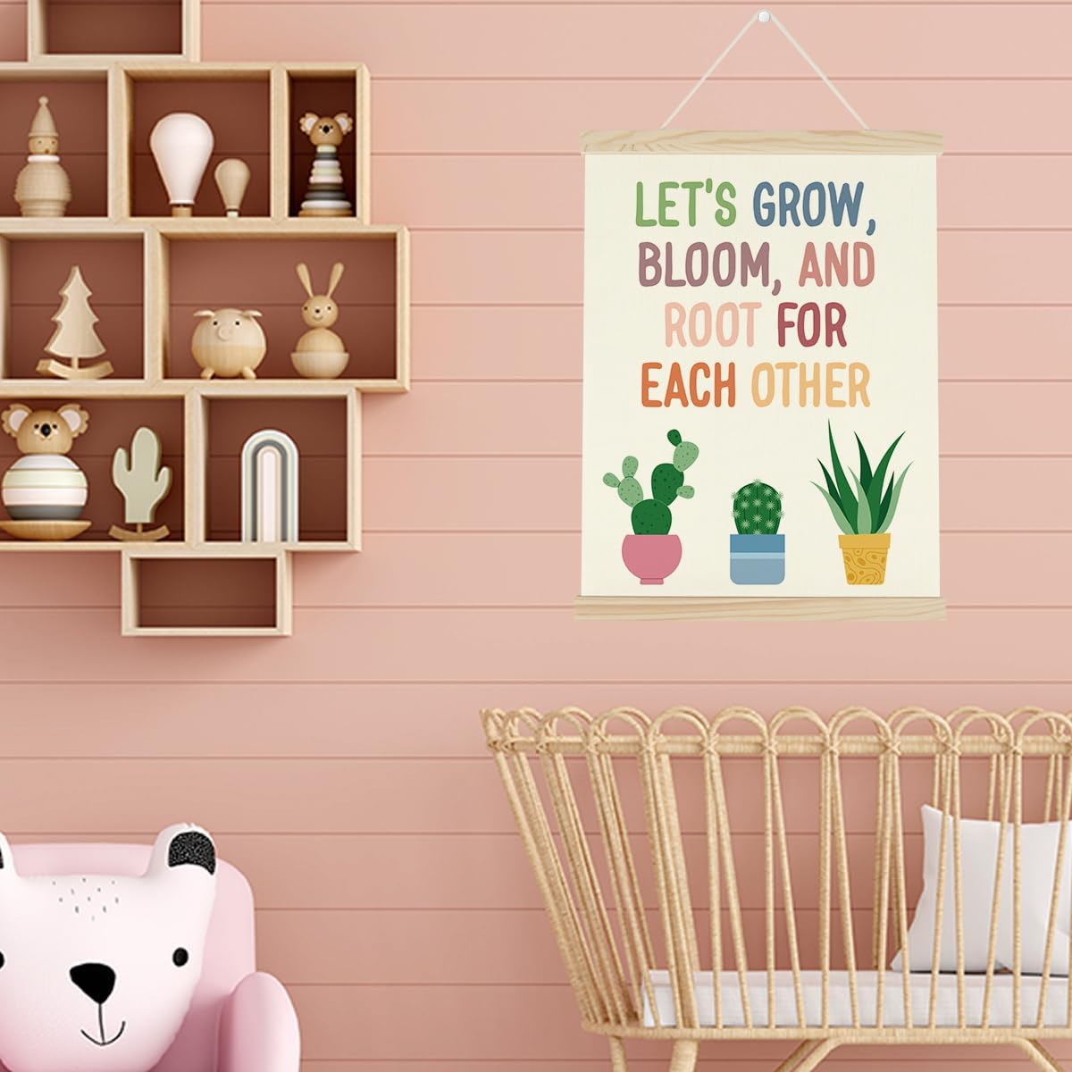 WINGTECA Let's Root For Each Other Sign Boho Decor Art Poster Hanger Frame Classroom Back to School Decorations Colorful Wall Hanging Banner Decor for Classroom Nursery Kids Room Preschool 12x16Inch