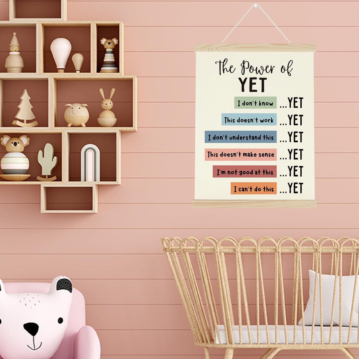 WINGTECA Motivational Decor Mental Health Poster Boho Hanger Frame Classroom The Power of Yet Colorful Wall Hanging Banner Decor for Classroom Office Kids Room 12x16Inch