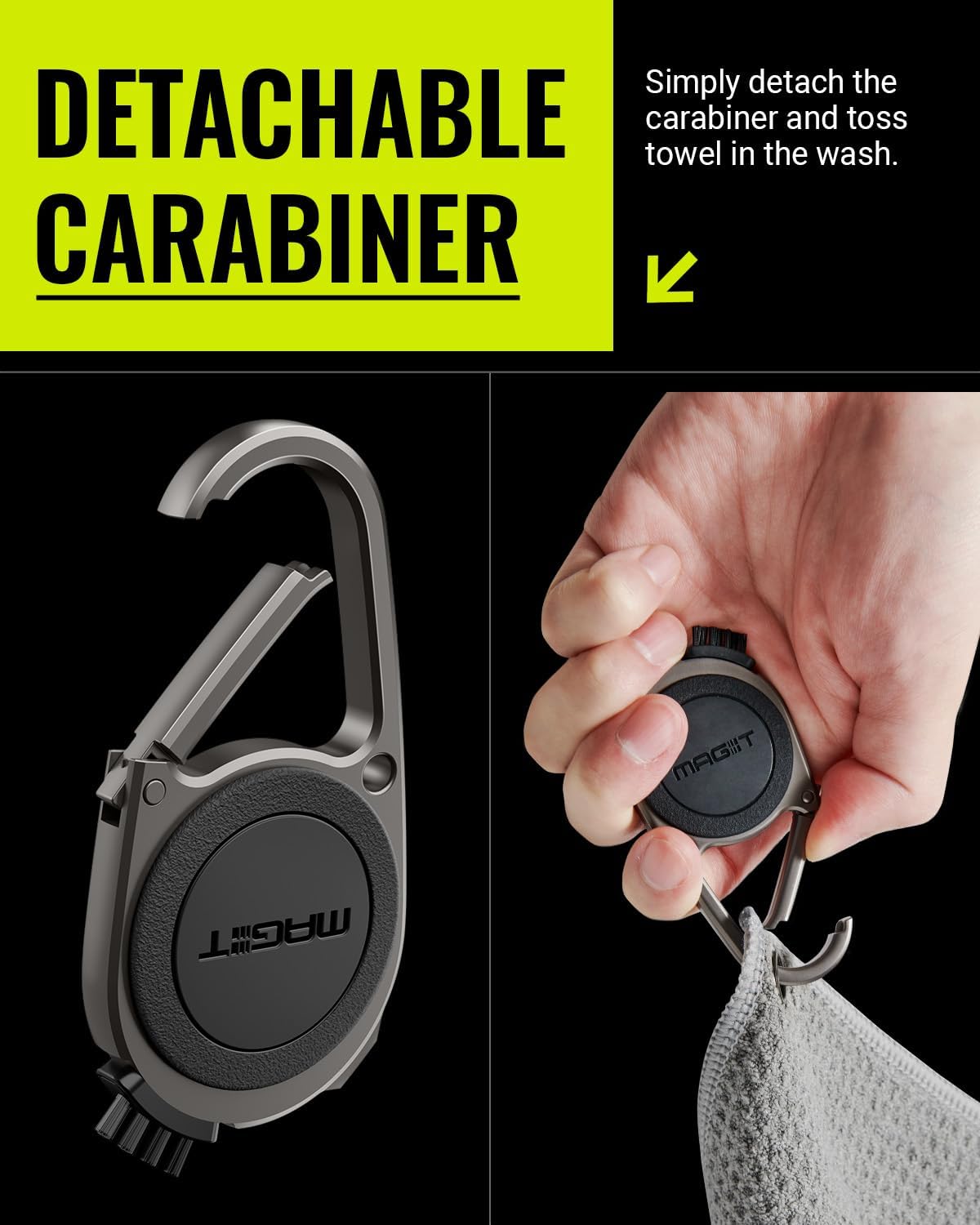 MAG-iT Magnetic Golf Towel with Carabiner | Strong Magnet, Ultra-Absorbent Microfiber, Groove Cleaner for Golf Bags - Grey